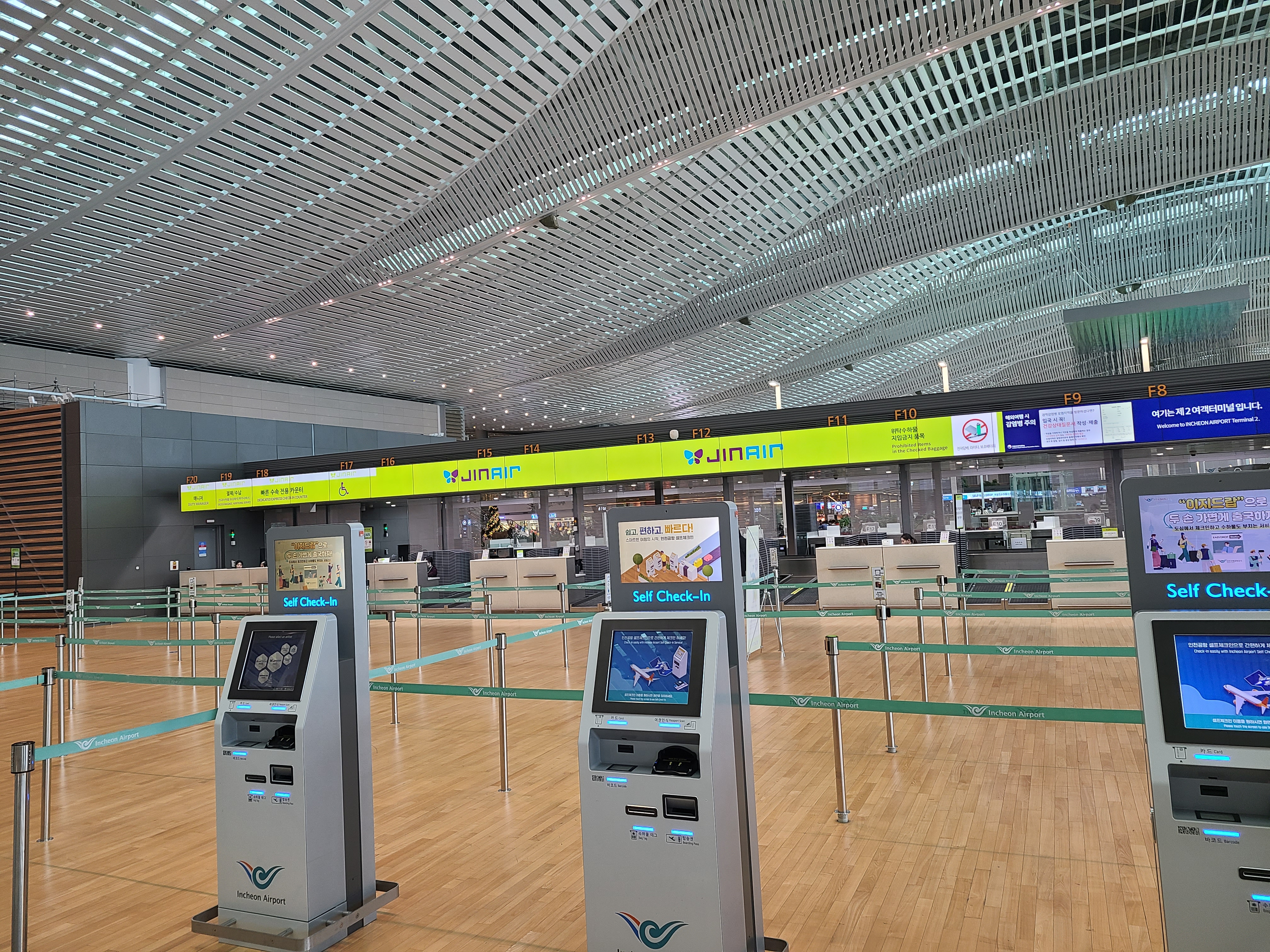 2터미널에 도착하면 진에어는 3층 F쪽에 위치하고 있습니다. 저는 셀프 체크인은 하지 않고 승무원에게 가서 접수했어요. 어차피 일찍와서 기다리지도 않고 해서 좋았습니다.