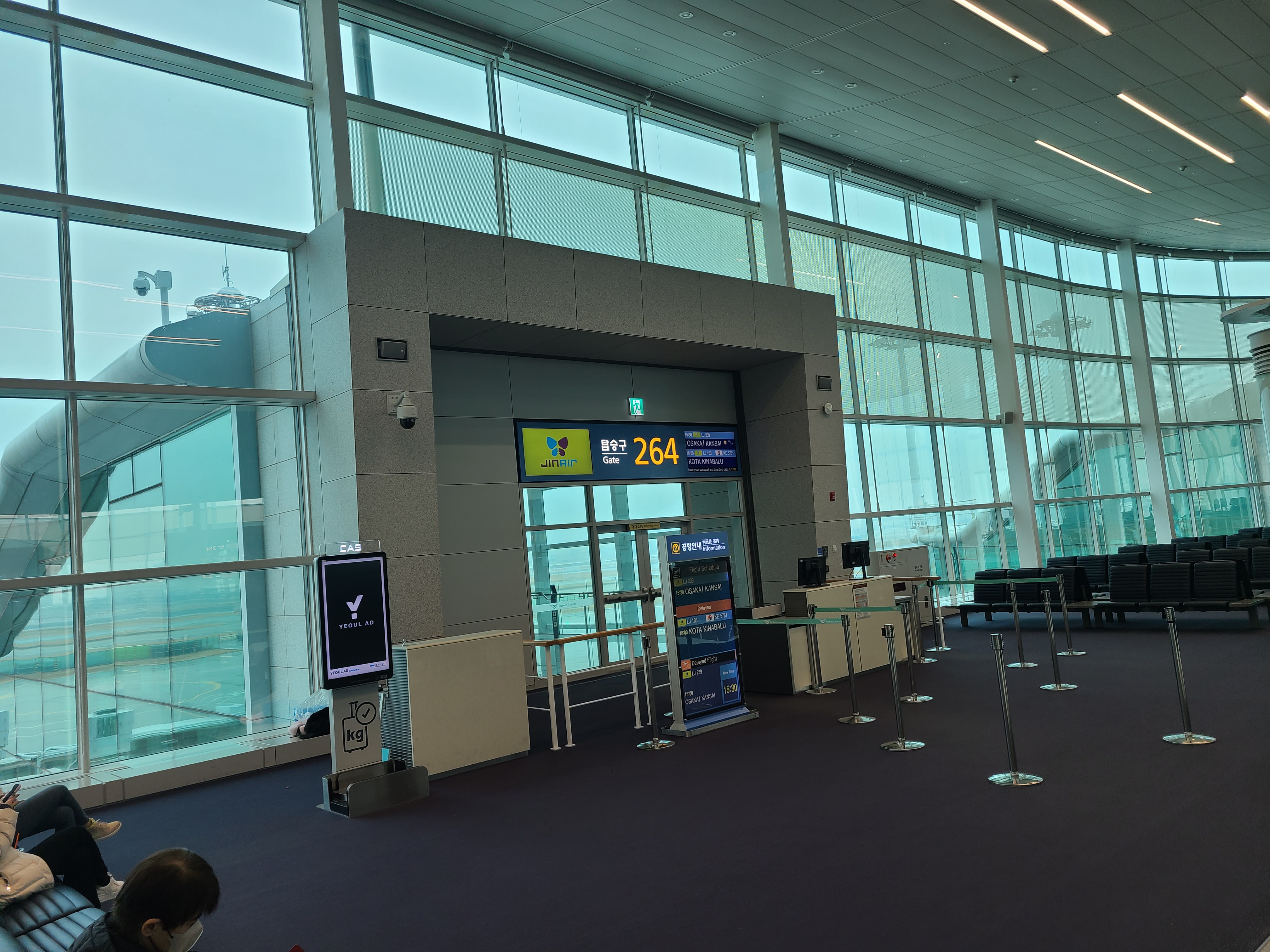 비행기 표를 보면 탑승 게이트가 적혀 있는데 거기에 맞는 번호로 가면 됩니다. 진에어는 264네요.