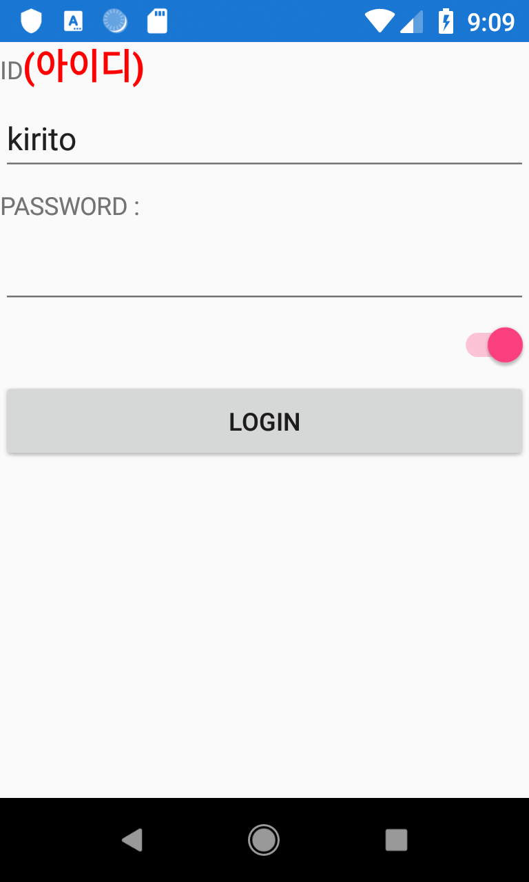 환경변수는 앱과 별도의 공간에 변수를 저장하거나 읽어 올수 있다. 마치 윈도우 레지스트리랑 비슷하다고 생각하면 이해가 쉬울것이다. 보통 로그인 id 기억하기 같은 기능을 구현할때 사용한다. 그럼 간단히 로그인 화면을 구현하여 학습해보자. 내용은 주석 참고.