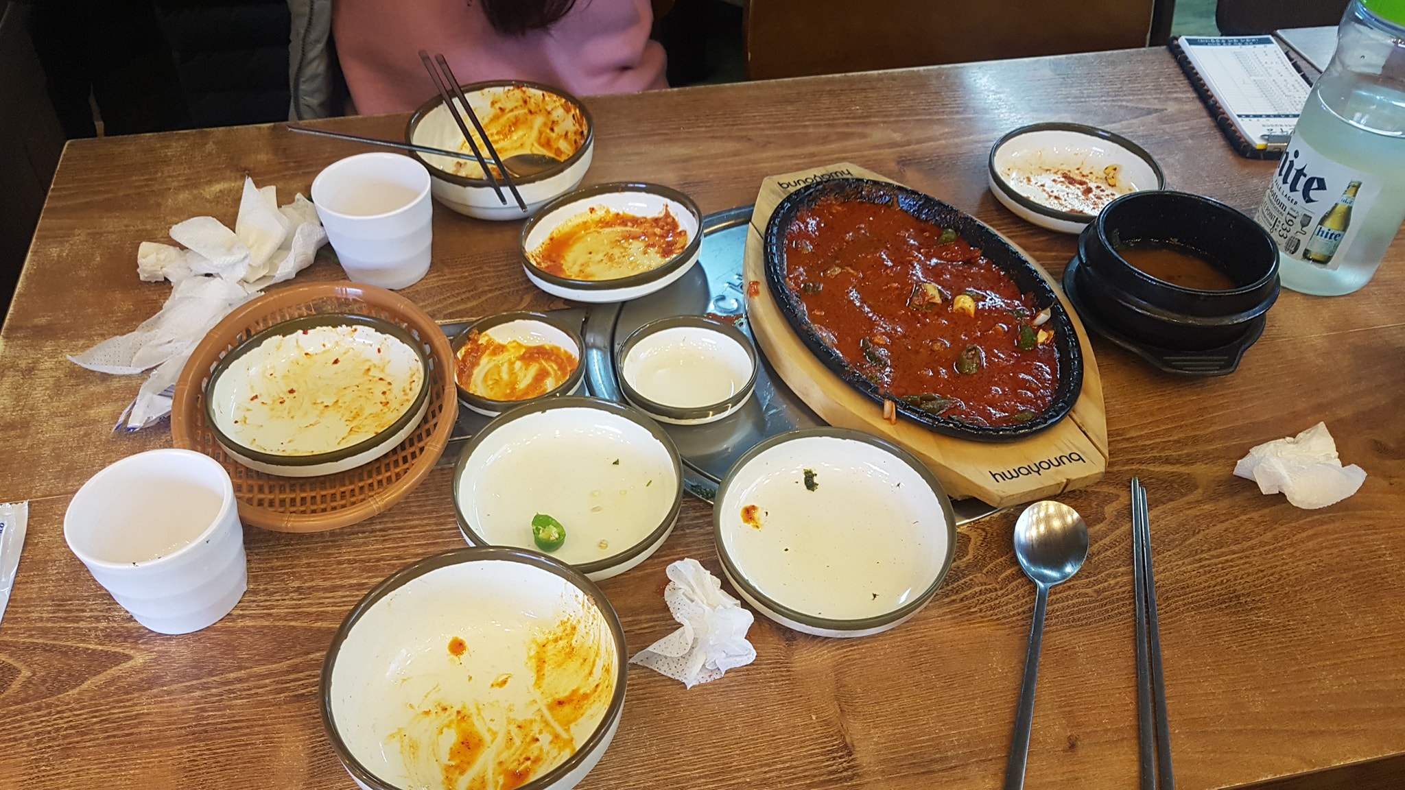 3. 주로 제육볶음에다가 밥을 주문해서 먹는다. 그러면 된장찌개가 딸려온다.