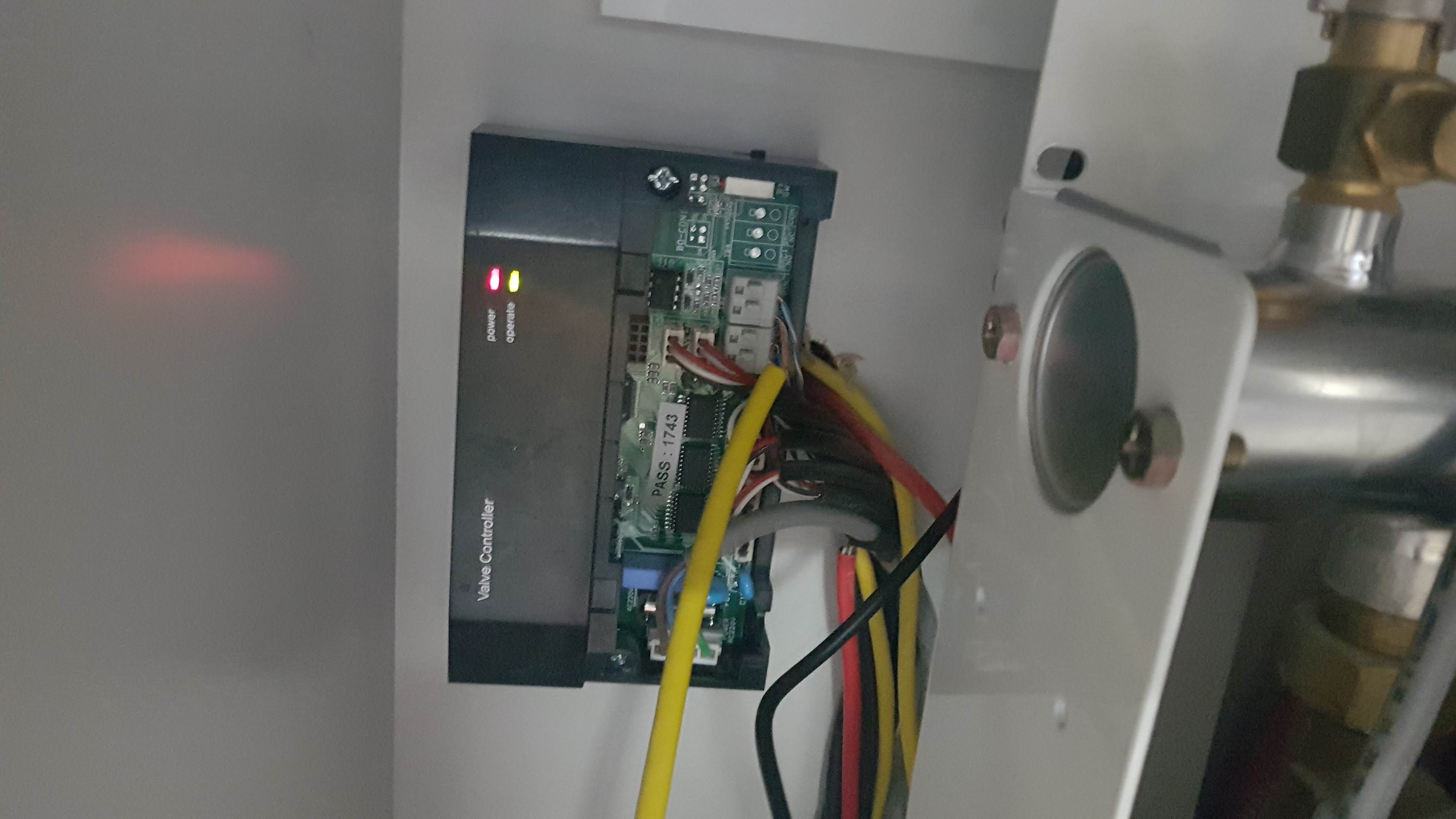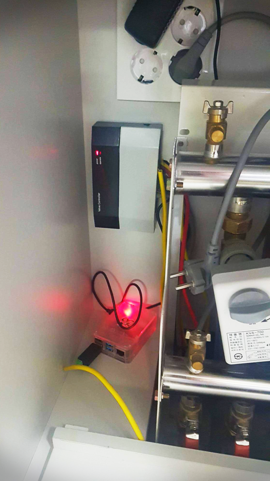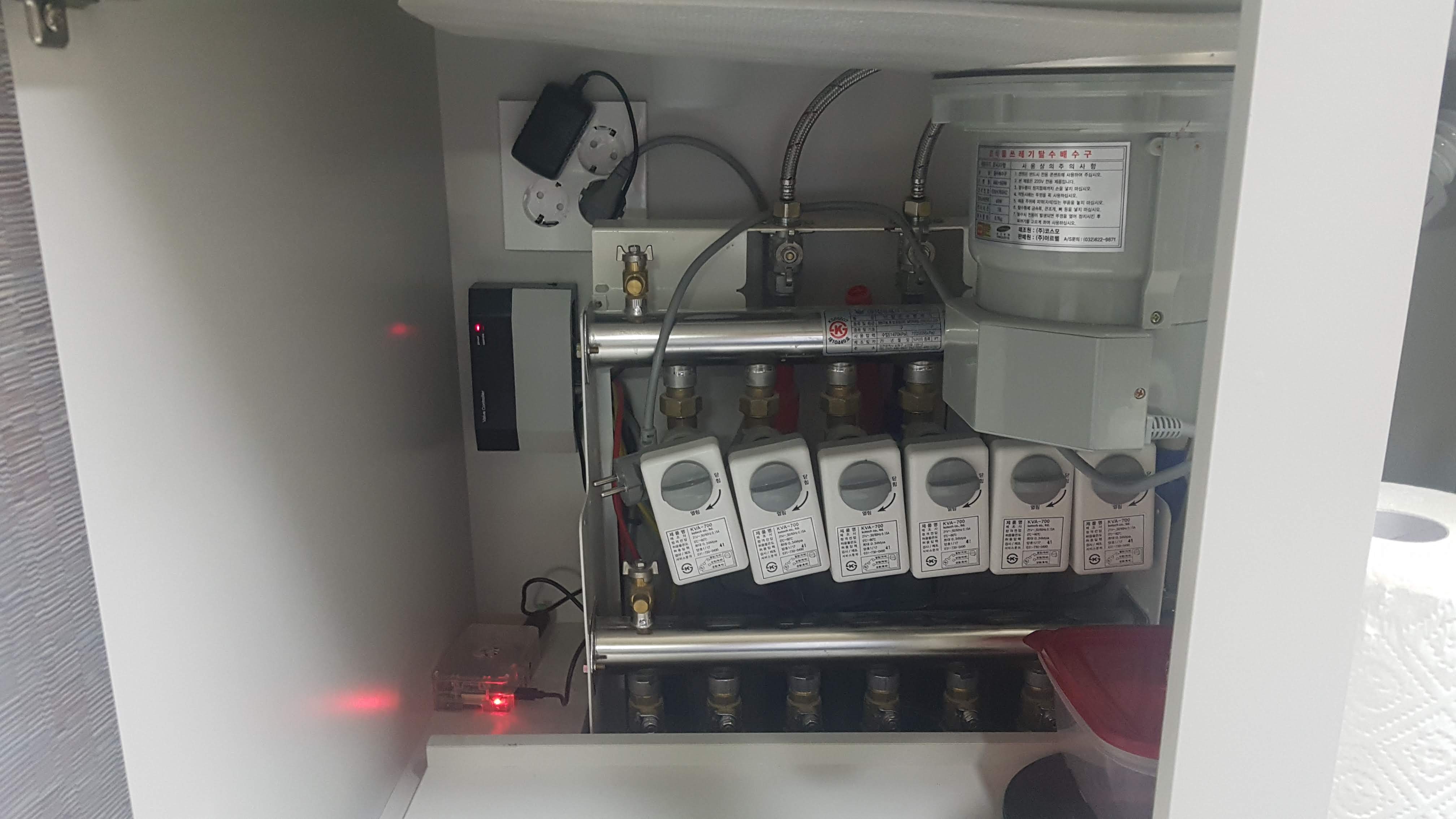 rs485를 어디에 연결할 수 있는지 잘 살펴보아야 합니다. 저같은 경우에는 싱크대 밑 밸브조절기(정확한 명칭은 모르겠습니다) 케이스를 제거하고 보드 부분에 연결할수 있는 단자가 있어서 RJ-45케이블을 잘라서 연결했습니다.