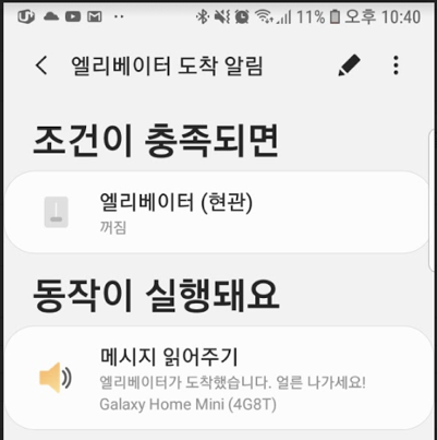 엘리베이터 도착시 갤럭시홈미니로 알림받기