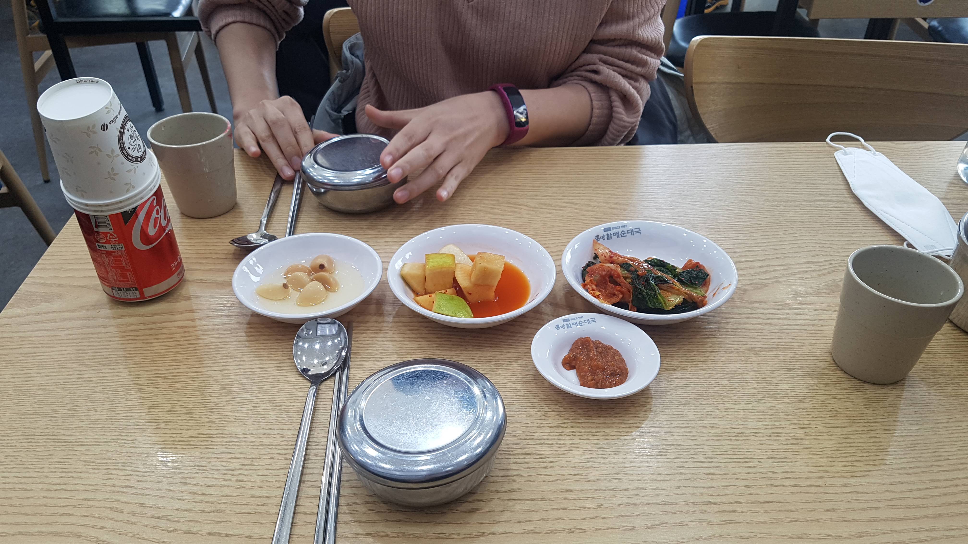 4. 순대국만 주문하기 뭐해서 세트1번(맛보쌈, 순대국2, 음료1)으로 시켰다. 순대국만 먹으면 뭔가 허전하기 때문에...(이래서 살이 안빠지나..)