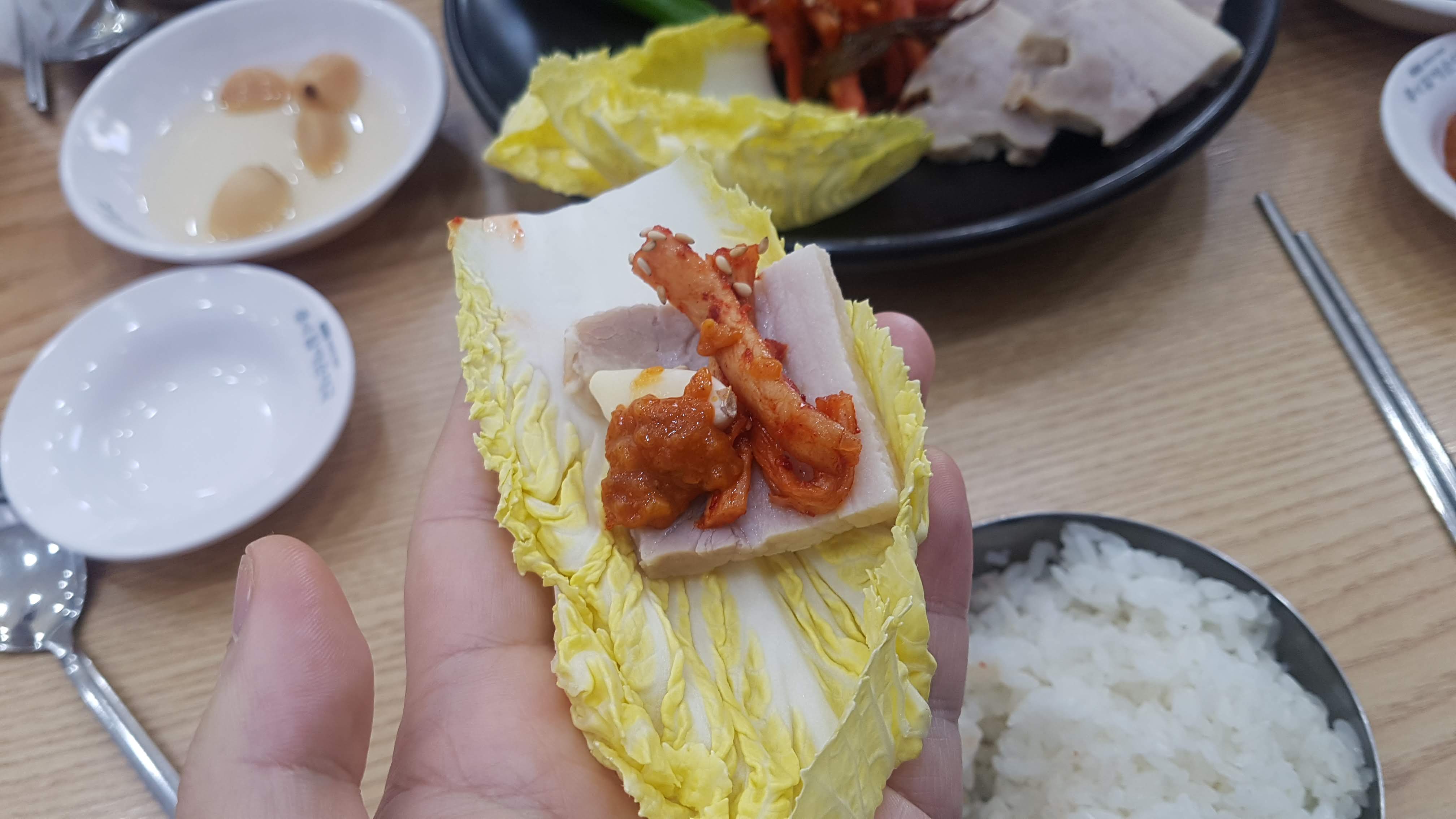 6. 맛보쌈으로 나온 고기는 부드러우면서 입에 착착감긴다. 배추랑 같이 싸먹으니 천상의 맛이였음.