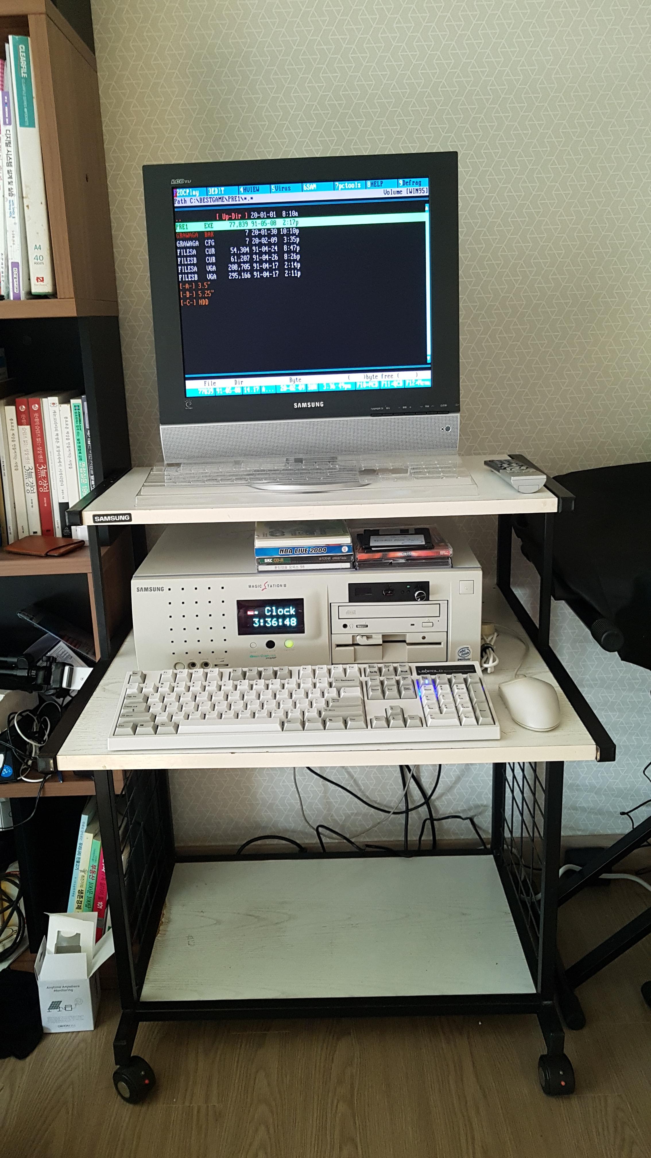 모니터도 삼성, 본체도 삼성, 책상도 삼성 모두 삼성 제품으로 채워졌습니다.^0^ 비록 알라딘 컴퓨터는 아니지만 제법 잘어울리는게 어린시절로 돌아간 느낌이 들어서 매우 반가웠습니다. 알라딘 286을 산지 30년이 되었는데 아직도 버티고 있는거 보면 삼성은 컴퓨터뿐만 아니라 컴퓨터 책상의 내구성도 끝내줍니다.