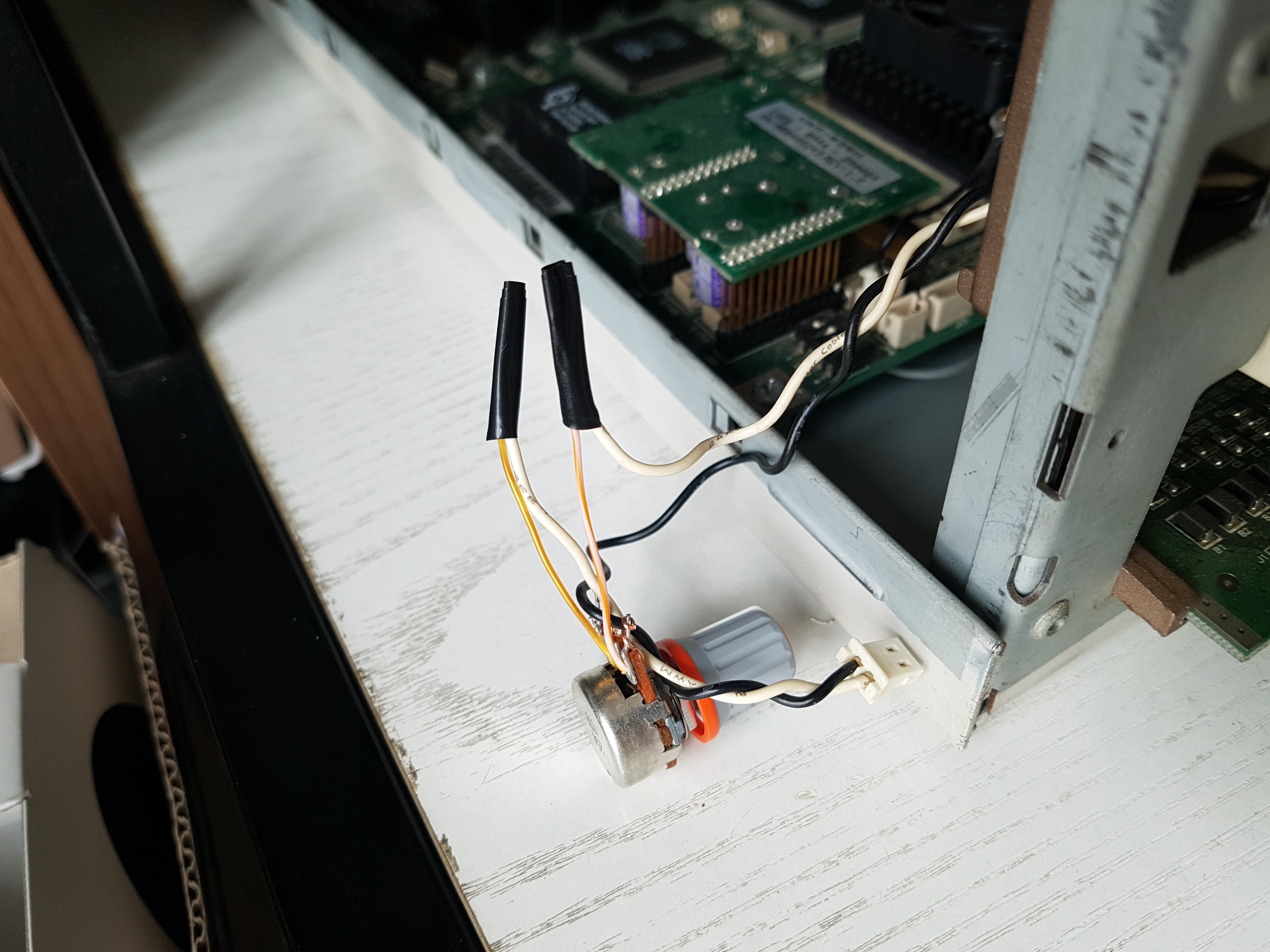 이전 레트로 피씨가 망가져서 다른 부품으로 교체할때 본체 앞부분에 있는스피커 부품을 본 적이 있었습니다. 얼른 컴퓨터를 뜯어서 스피커를 보았습니다. 삼성 컴퓨터는 다른 컴퓨터에 비해서 비프 스피커 출력이 매우 컸습니다. 이걸 조절할 수 있게 만들어주어야 이런 등짝 스매싱은 안당했을텐데 하는 아쉬움을 느꼈습니다. 스피커 부품을 자세히보니 두가닥 선으로 연결되어 있었는데 하나는 신호선(흰선), 하나는 그라운드(검정선) 일거라고 추측했습니다. 울집에는 디지털 멀티매터가 없으므로 이렇게 항상 추측성으로 작업해야합니다.(위험하니 따라하지 마세요 ㅠㅠ 저처럼 운이 좋은 사람이 해야합다 ㅋㅋ) 신호선을 잘라서 가변저항을 연결해줍니다. 그리고 컴퓨터를 킨 다음 제일 씨끄러운 보글보글을 켜줍니다. 보글보글은 켜자마자 배경음이 엄청 강하게 나서 테스트용 게임으론 딱입니다. 가변저항을 돌려서 자신이 원하는 음량을 맞춥니다. 이전소리와 지금의 소리를 비교해보면 확실한 차이를 느낄수 있습니다. 혹시나 합선이 될수 있으니까 각선마다 전기테이프로 가려주고 메인보드랑 안닿는 위치에 놓아둡니다. 케이스를 닫고 마무리!!