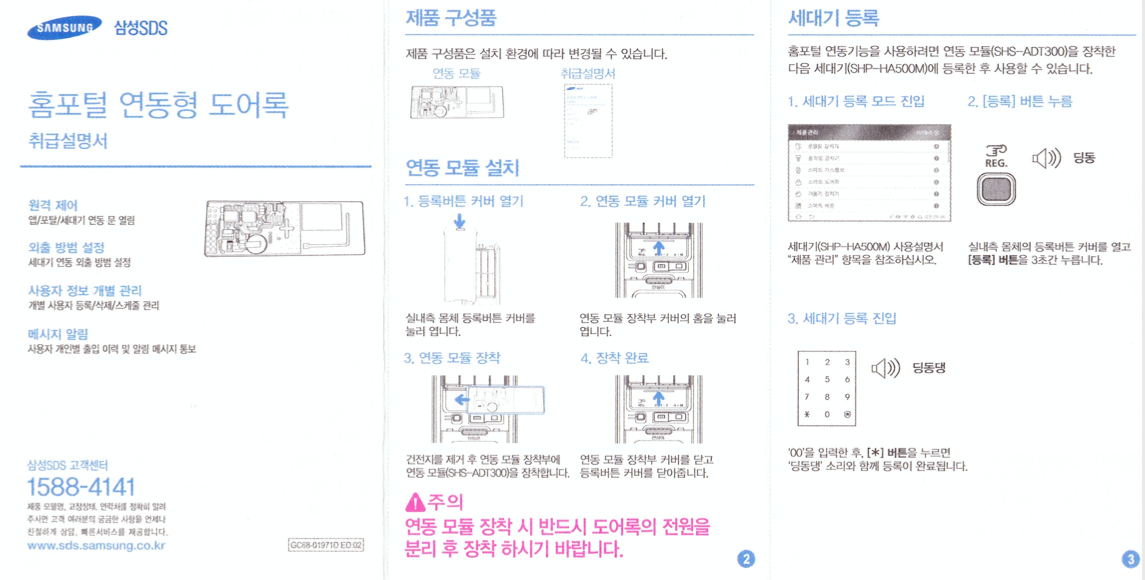 오늘은 삼성 도어락을 더욱 스마트하게 만들어줄 SHS-ADT300 지그비 모듈을 설치하는것을 소개해드리겠습니다. 먼저 자신의 도어락이 지그비 모듈과 연동이 가능한지 확인이 필요합니다. 자신의 모델명을 확인 한 후, 고객센터에 전화를 걸어 가능한지 확인하는 작업을 선행하십시오. 지그비 모듈 가격은 택배비포함 약 3만원 정도 합니다.