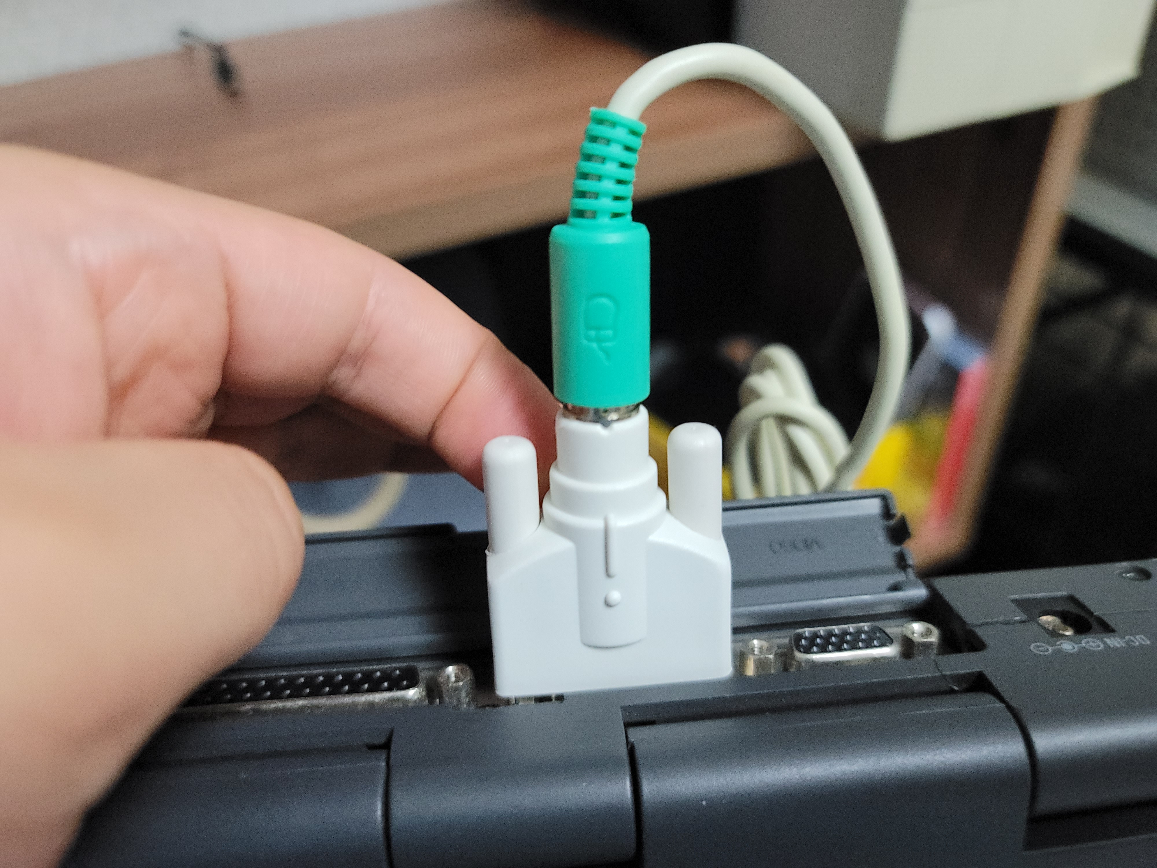 책장에 두고 쓰기때문에 공간이 마우스를 운영하기엔 공간이 협소합니다. 게다가 이 노트북은 PS/2 포트가 왼쪽에 있어서 더욱더 공간이 좁아지는 ㅠㅠ 그래서 시리얼 마우스가 필요했던 것입니다.