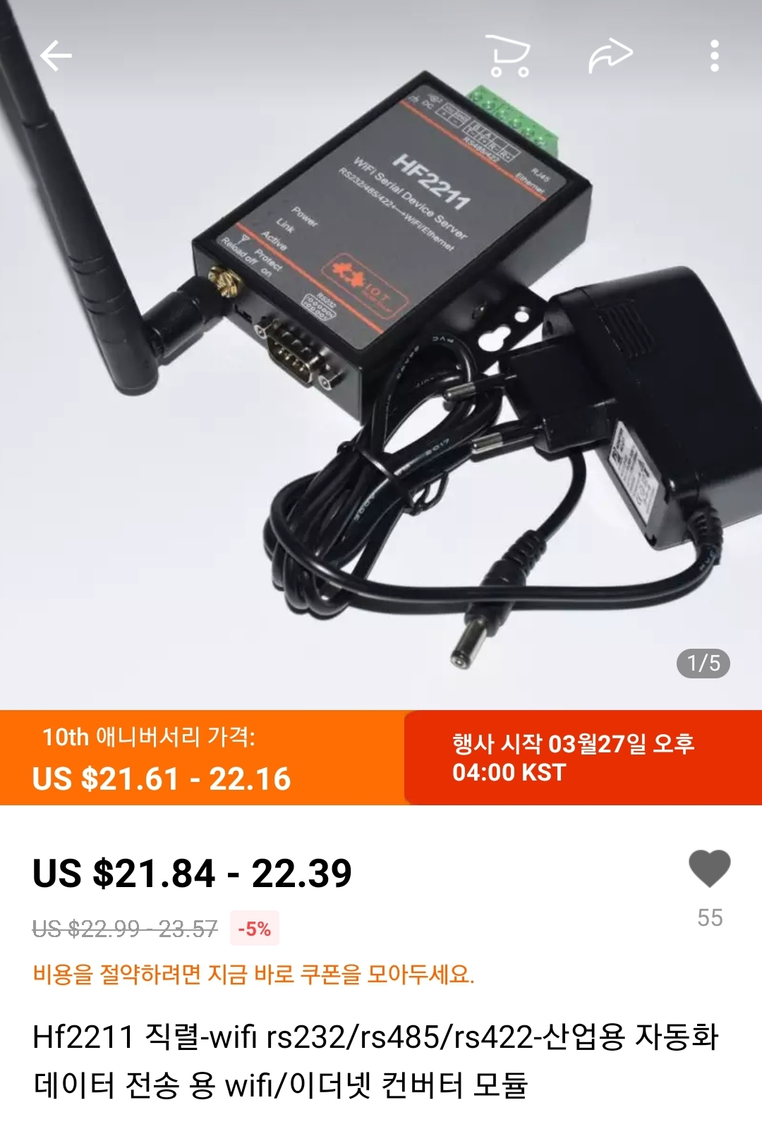 이 기능 자체가 산업용 제품으로 분류되어서 그런지 매우 고가로 형성되어 있었습니다. 국내업체쪽으로 알아보니 20~30만원 정도였습니다. 알리익스프레스 검색을 해보니 약 2.5만원 정도로 매우~ 저렴했습니다. 한국산과 중국산의 가격차이가 너무 나서 좀 놀랐습니다. 미세먼지 배출국인 중국...그래서 중국산은 안 사겠다고 다짐했지만 가격앞에 무릎을 굻었습니다. 가성비앞엔 장사가 없더라고요.