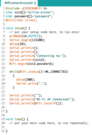 동작 확인 하기 위해서는 아래와 같이 코딩을 해줍니다. 그리고 [V] 버튼을 눌러 컴파일&업로딩을 합니다.