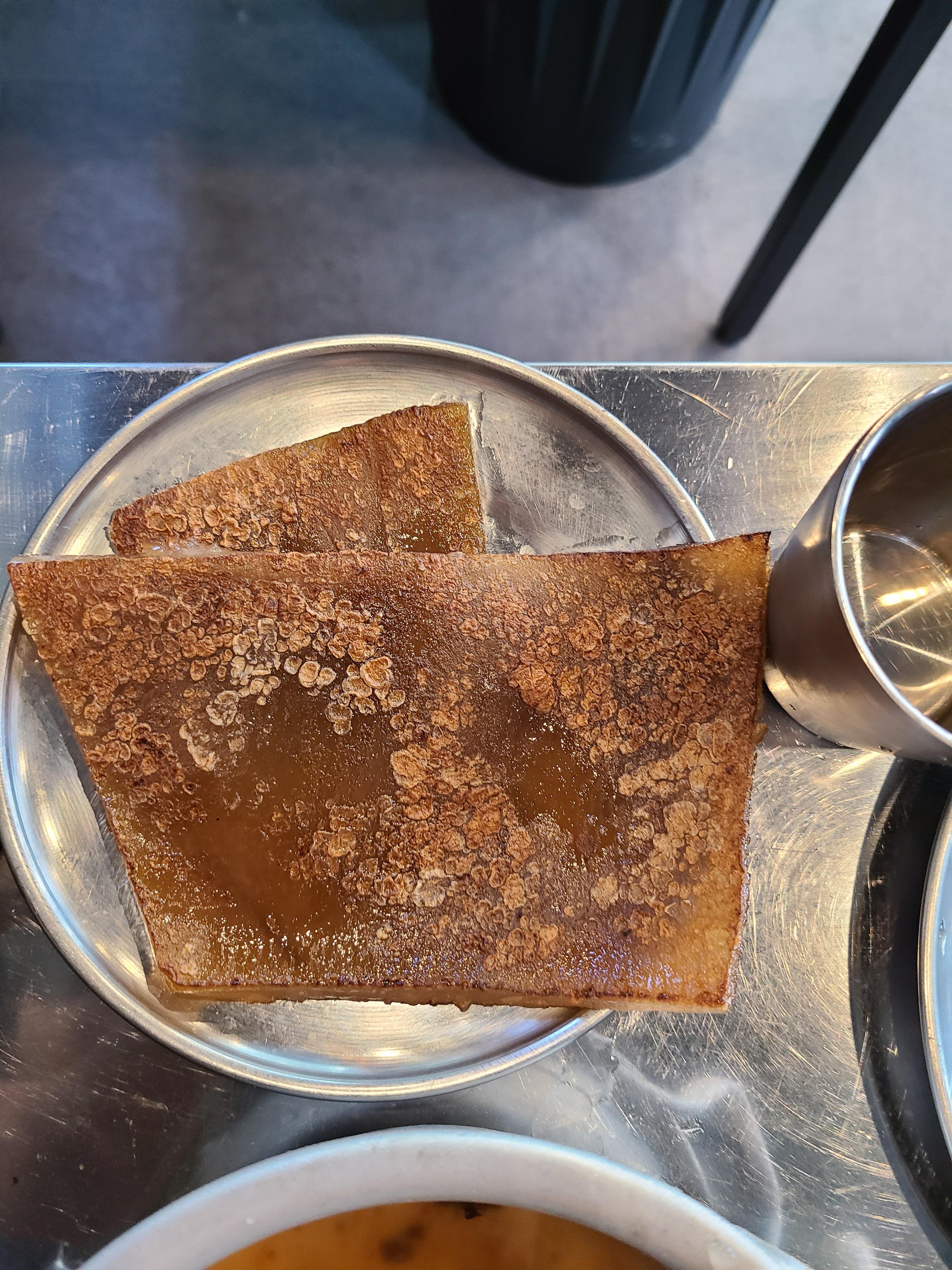 8. 조금 모자른것 같아서 돼지껍떼기 1인분 주문했다. 미리 구워져 나오기때문에 은은하게 구우면 되는데...모르고 가운데다가 놓으니 다 타버렸다. 하지만 맛있었다.