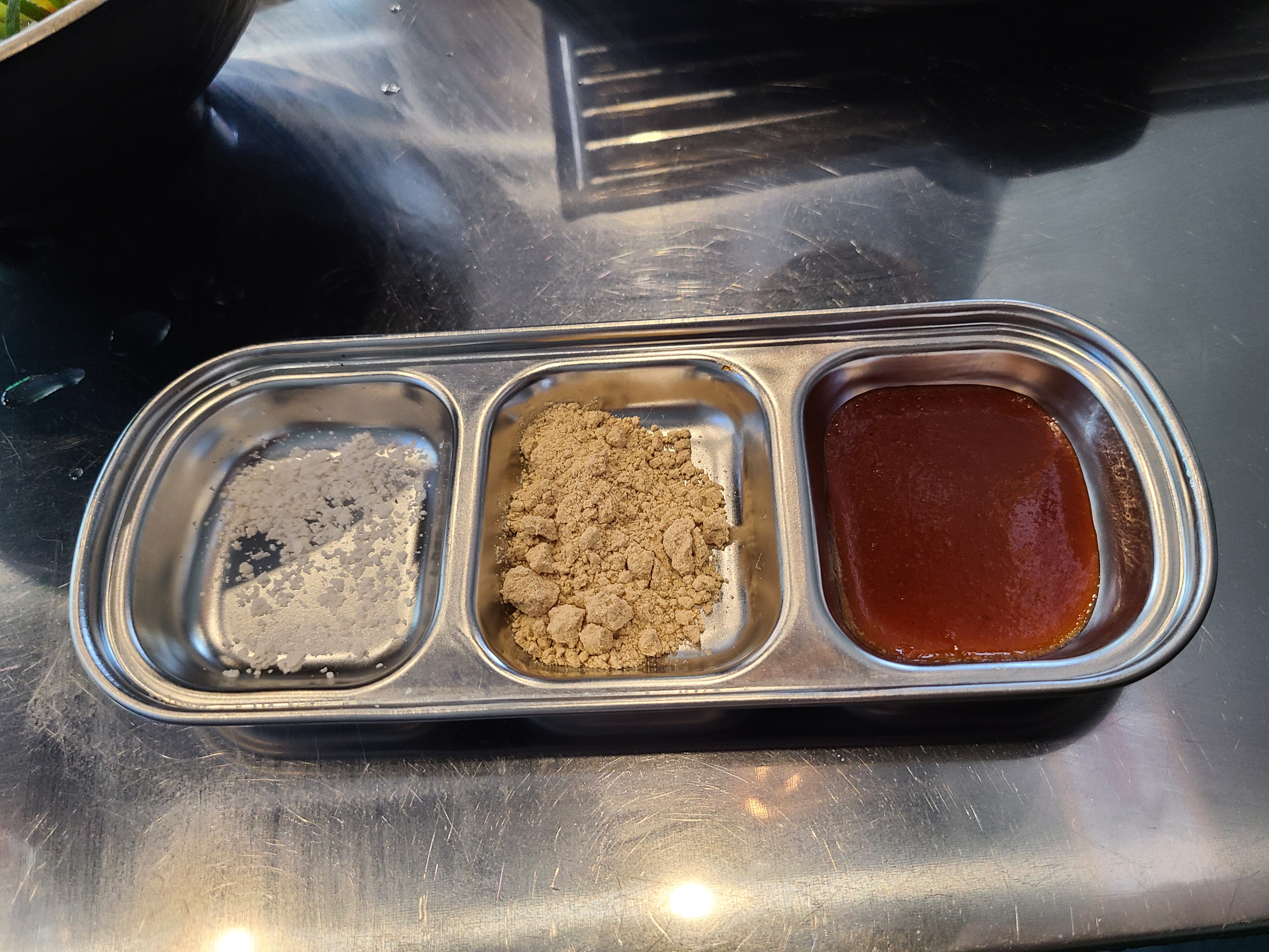 7. 화로에 놓여진 새우젓 소스는 오랫동안 가열하니 약간 명태조림같은 맛이 났다.