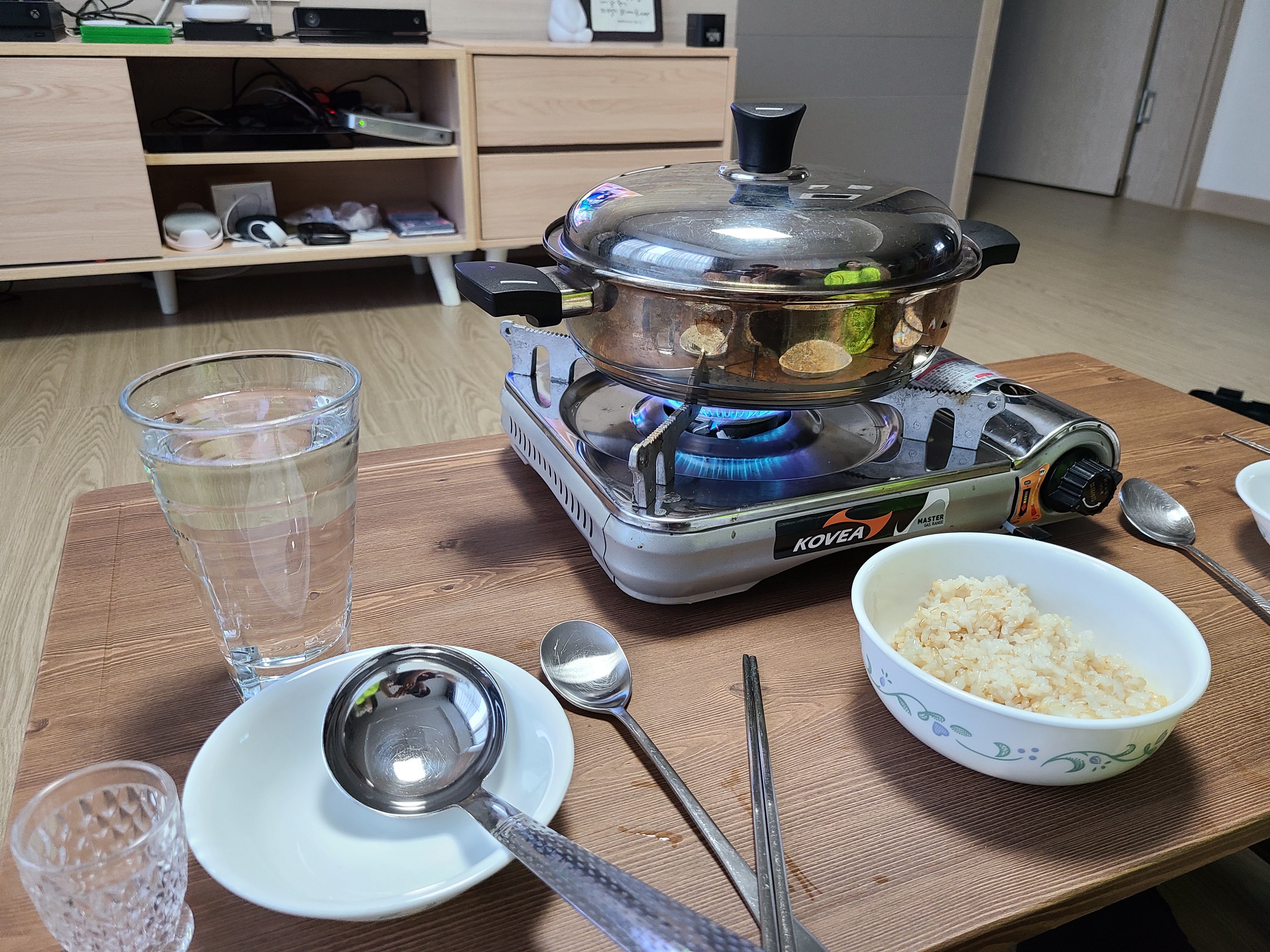 7. 라면사리 + 밥 까지 먹었더니 배가 빵빵해졌음.