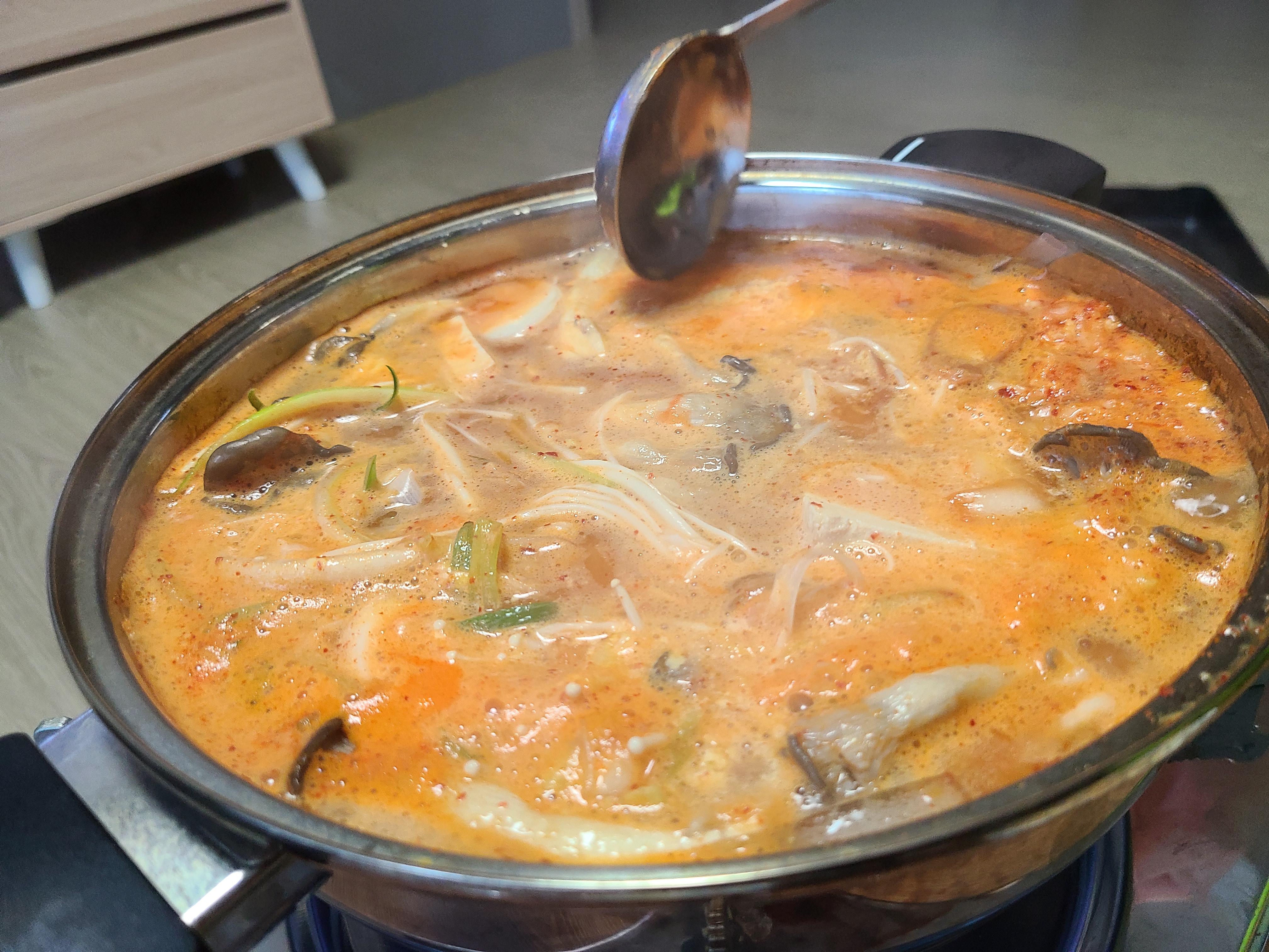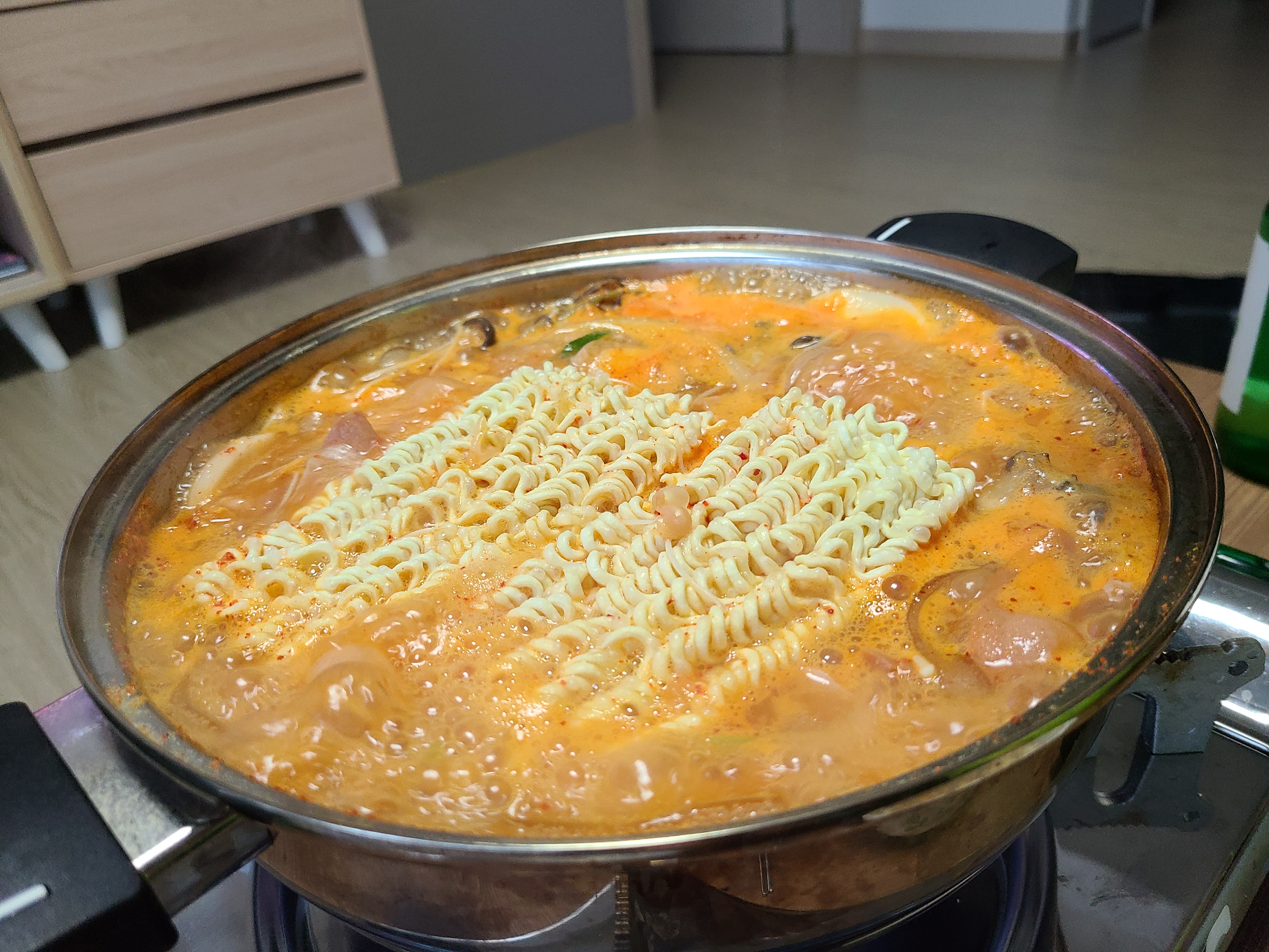 5. 팔팔 끓을때 라면사리도 넣어주었음.