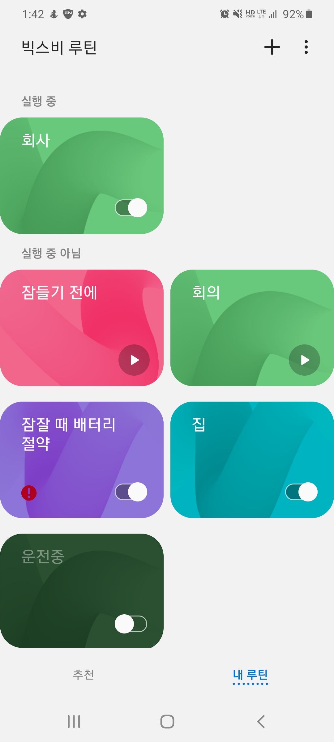 배터리 절약 루틴은 잠자기전 깜빡하고 충전을 안하고 잘때 유용합니다. 절전모드가 자동으로 실행되서 배터리가 방전되는 불상사를 방지해줍니다.(다음날 알람 안울리면....정말 큰일이겠죠!?)