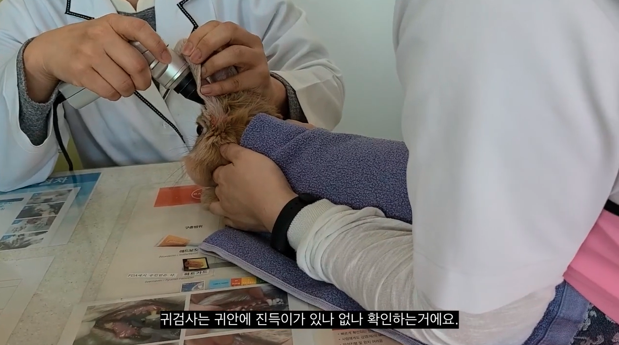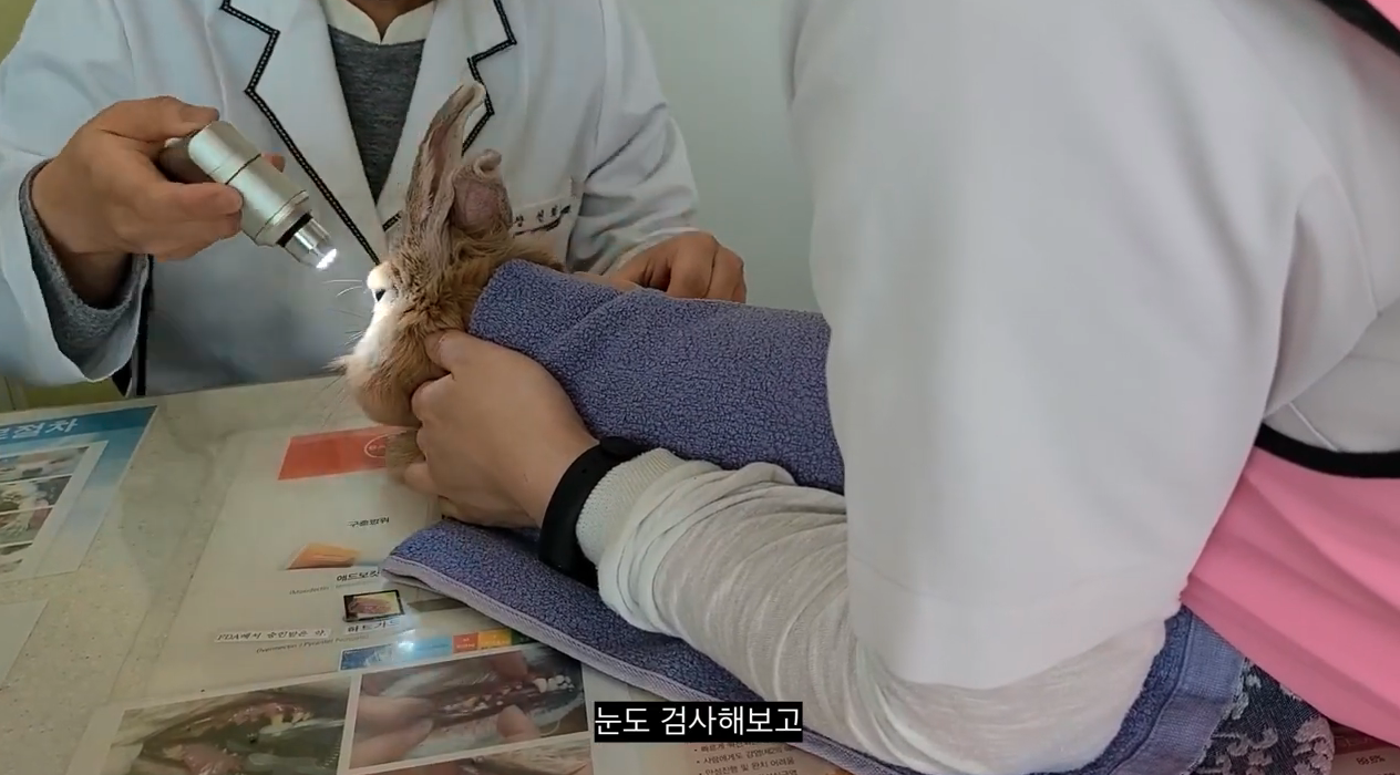 토끼는 귀가 커서 귀 건강이 매우 중요합니다. 특히 진득이들이 귀에 붙어서 피를 쪽쪽 빨아먹고 살수 있는데요.(옛날 우리 이같은...녀석들..) 선생님께서 현미경으로 꼼꼼하게 진득이 유무를 확인해주셨습니다. 다행이 깨끗하다고 하셨어요.