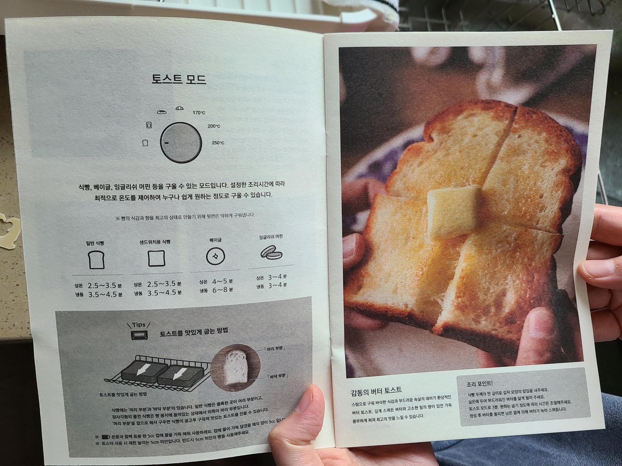 이 토스트기의 별명은 죽은빵도 살려낸다큰것입니다. 어떻게 살리느내면 저기 저 작은 컵 보이시죠? 저기에 물을 담아서 위판 금속구멍에 넣어주고 돌리면 스팀이 일어나서 빵을 살려낼수 있습니다. 빵이 점점 건조해지면 딱딱해져서 못먹는데 스팀으로 부드럽게 해준다는 원리이지요. 죽은빵만 아니라 산빵(?)도 스팀의 효과는 엄청 납니다. 스팀으로 인해 겉만 빠삭하게 굽고 안은 엄청 부드럽게 되거든요.