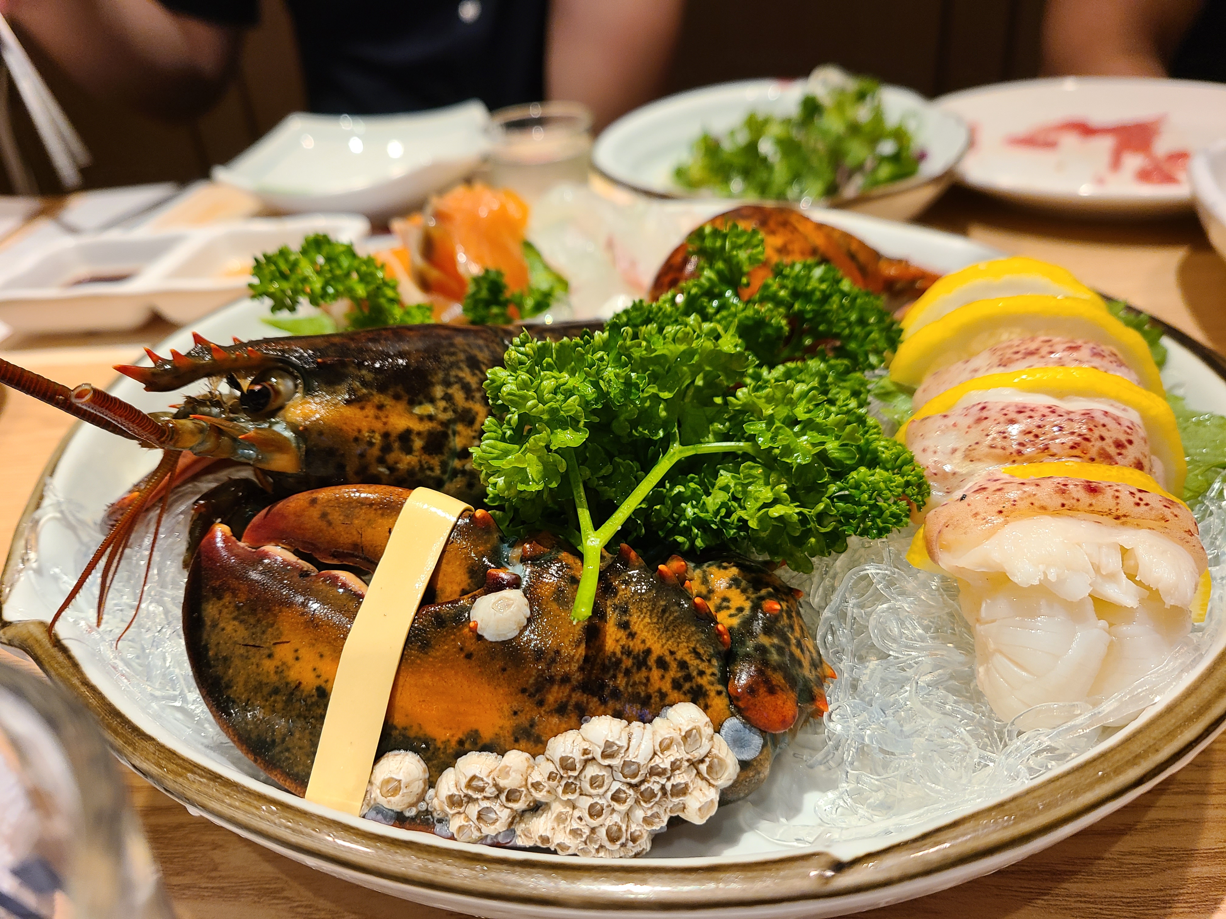 3. 1인당 6만원짜리로 주문했는데 쓰끼다시랑 찌개, 랍스타 회, 랍스타 찜, 튀김, 참치회 등 정말 다양하게 나왔습니다.