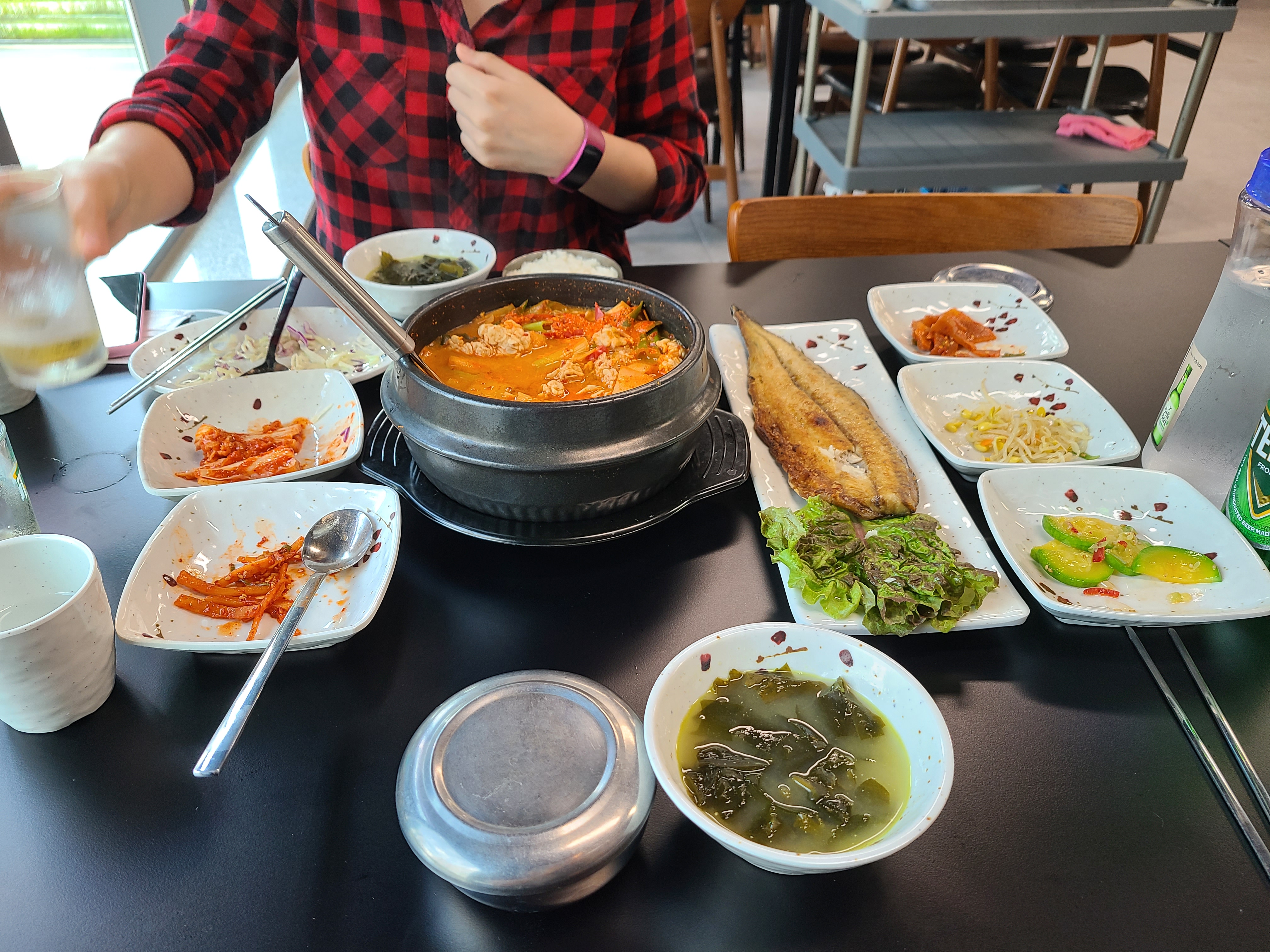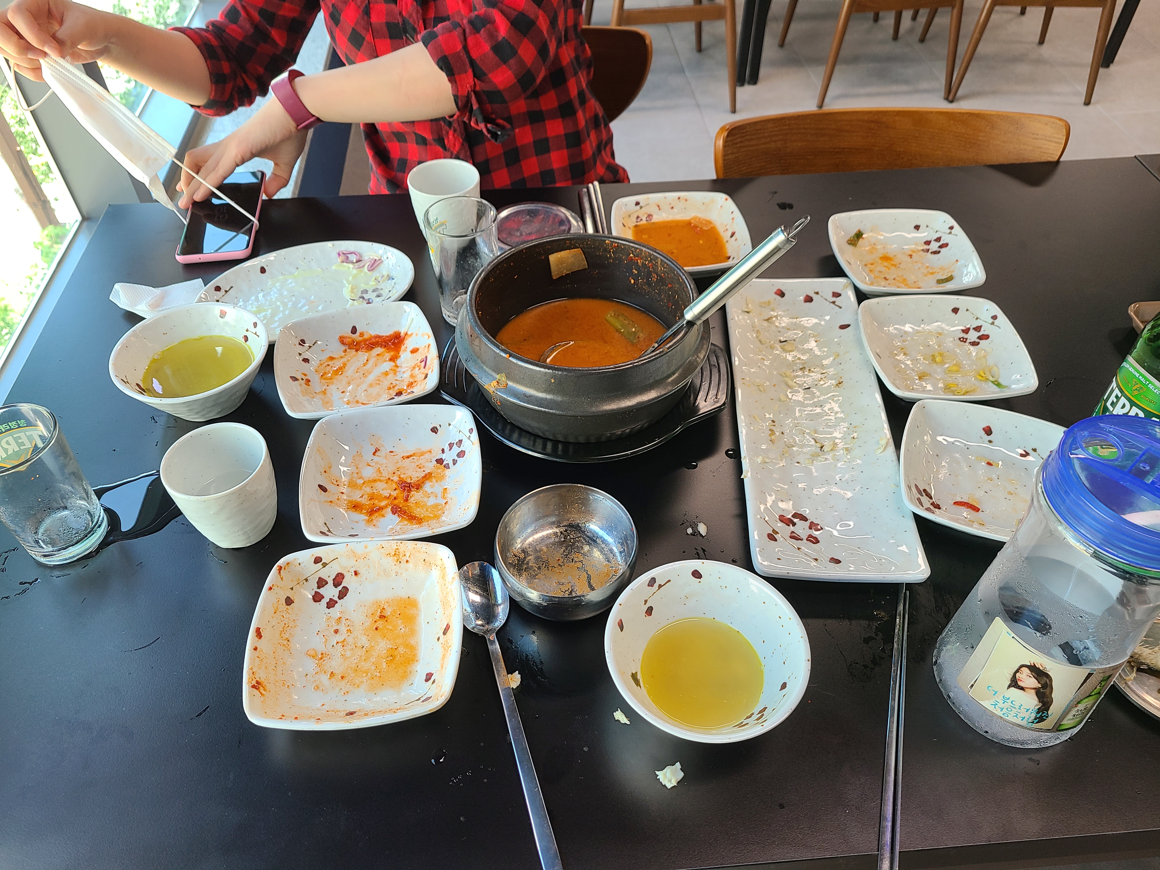 8. 그런데 에어컨을 안 틀으셔서 실내는 조금 더웠습니다. 게다가 탕, 찌개 종류를 먹으니 더 더웠어요.