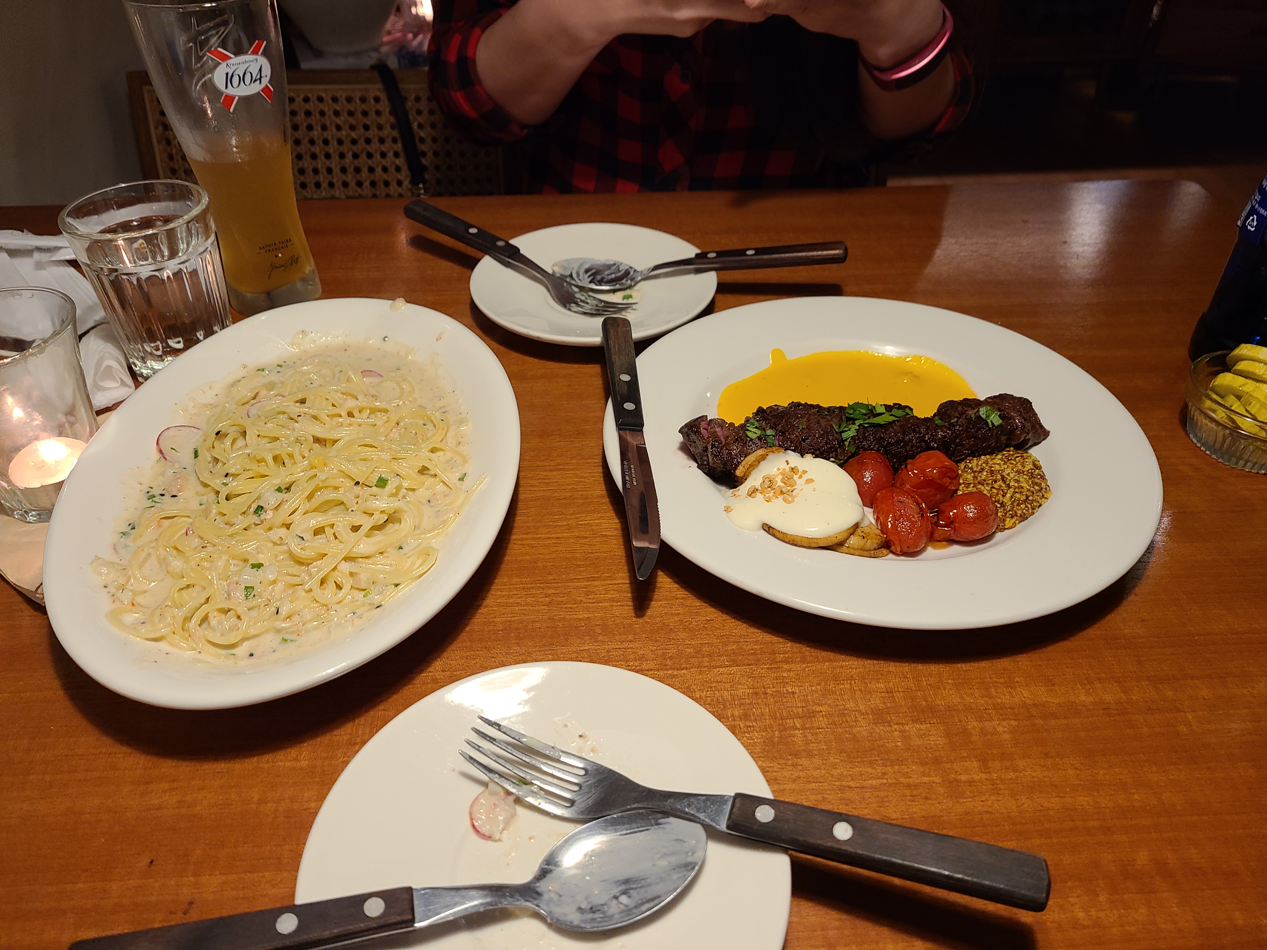 4. 명란 크림파스타와 살치살 스테이크를 주문했는데 파스타는 이때까지 먹었던 파스타중에 제일 맛있었습니다. 스테이크는 얇게 썰어 주셨는데도 육즙이 살아 있어서 식감이 좋았는데 양이 좀 적어 보였습니다.