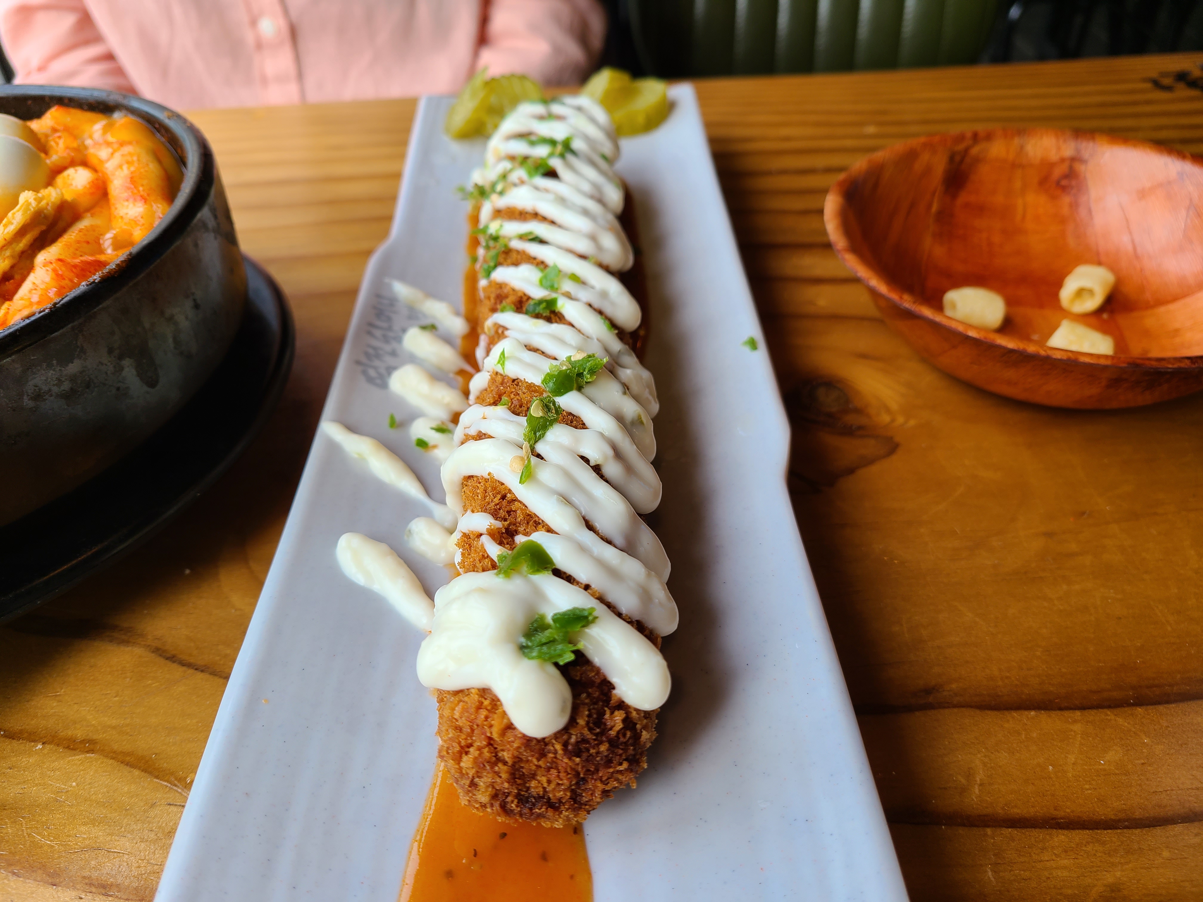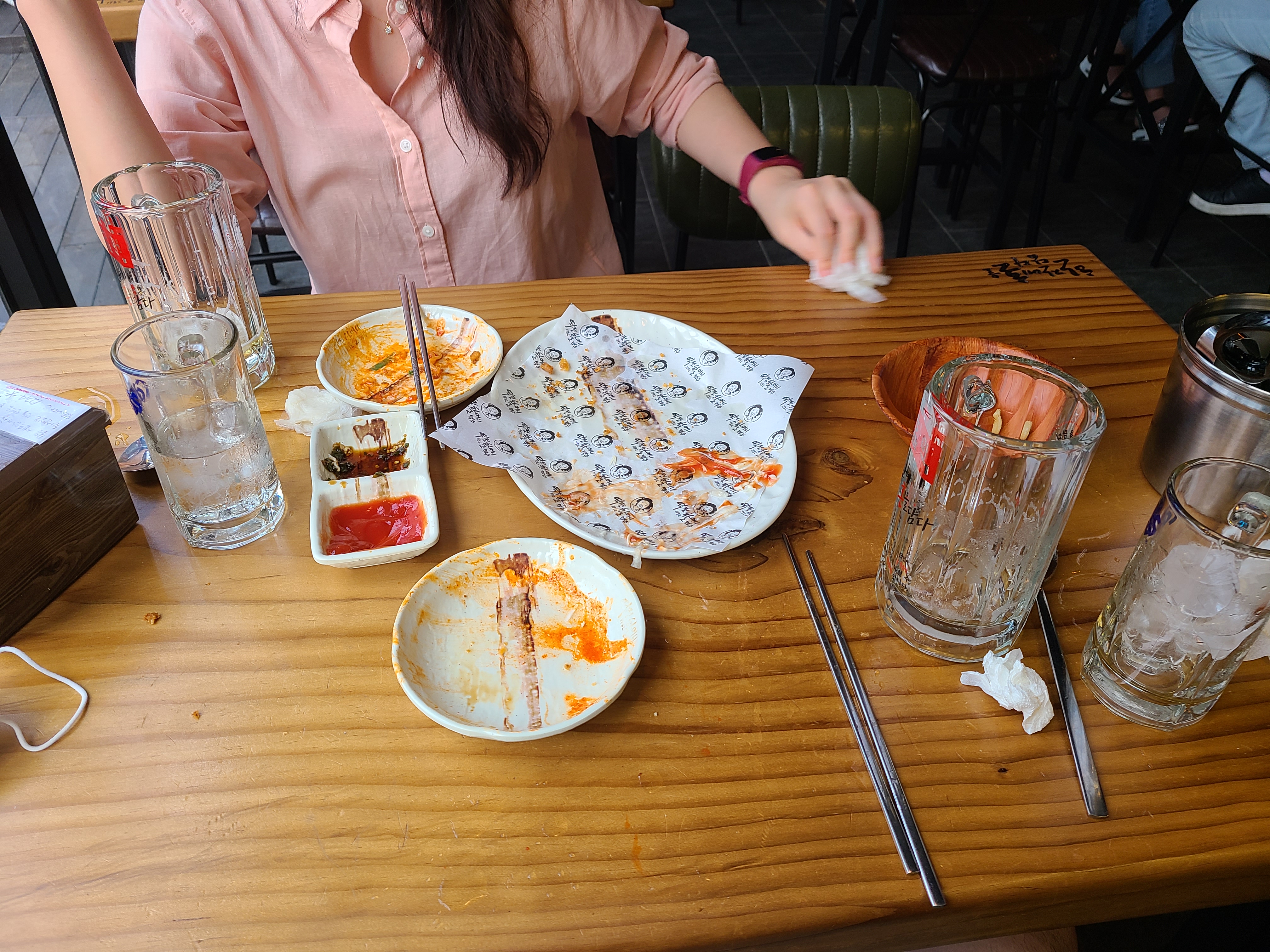 4. 맥주 에다가 특이하게 저희는 라볶이를 시켰습니다. 라볶이를 먹어 본지 오래되서 시켰는데 진짜 라볶이가 고소하고 부드러운게 맛있더라고요. 오죽하면 와이프랑 라볶이는 이집에서 먹어야 하는거야 라고 할 정도입니다.