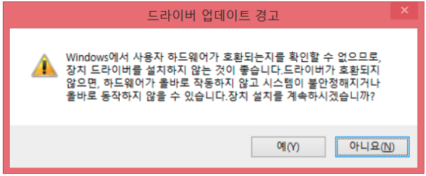 6. 드라이버 업데이트 경고창이 나오는데 [예]를 눌러줍니다.