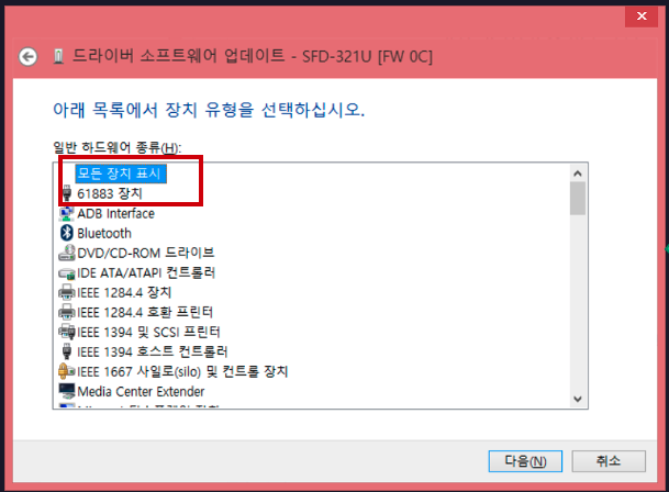 4. [모든 장치 표시] 버튼을 누르고 드라이버 로딩 시간이 있기 때문에 잠시 기다립니다.