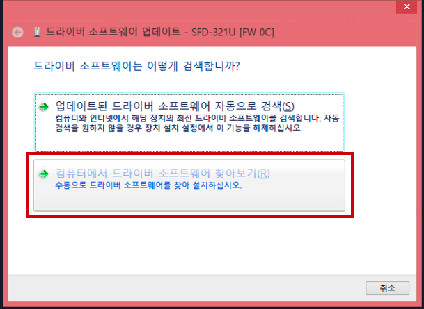 3. [컴퓨터에서 드라이버 소프트웨어 찾아보기] 버튼을 클릭합니다.