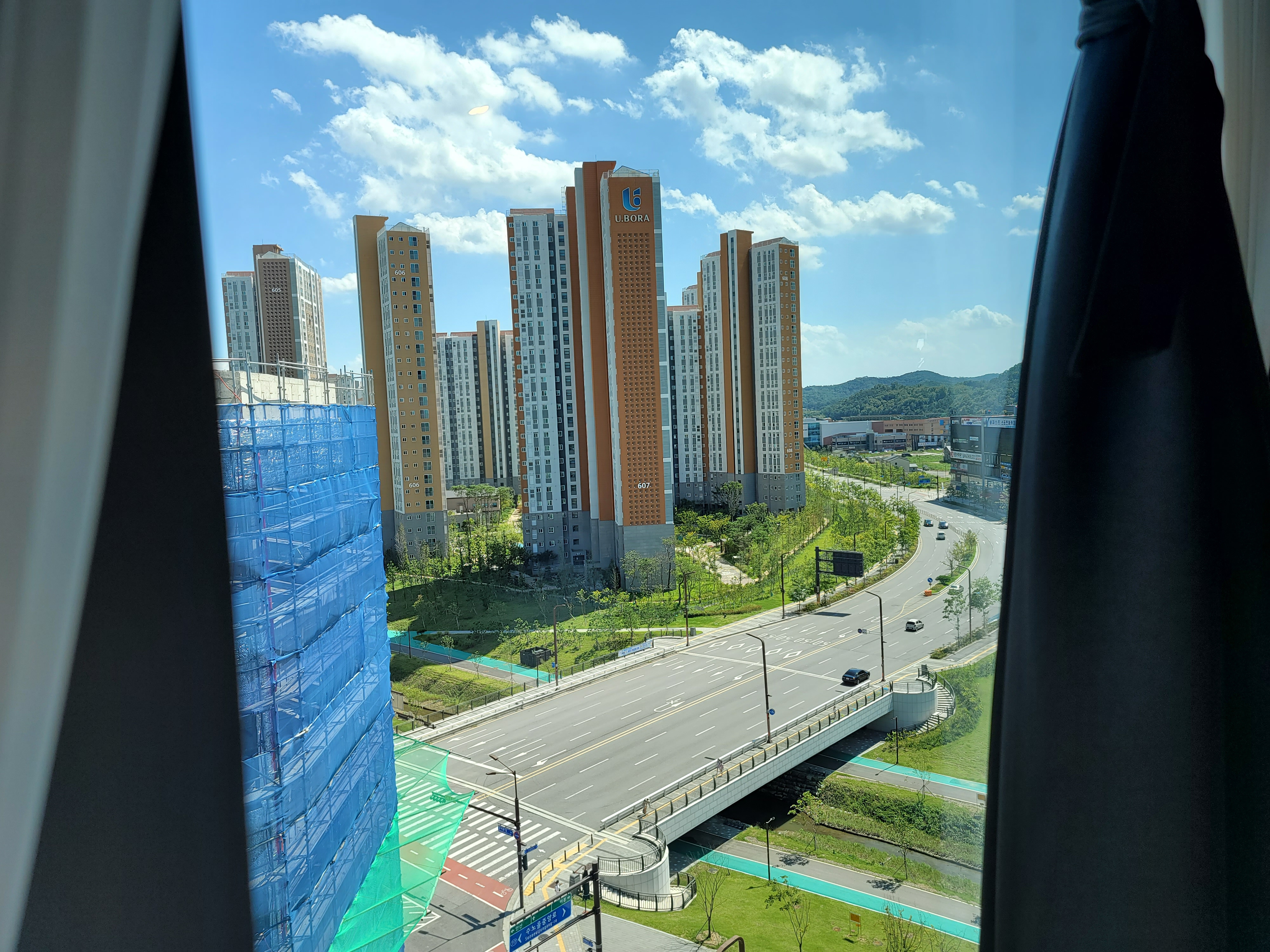 5. 음식을 기다리는데 우리 아파트가 보여서 반가웠습니다. 공기도 깨끗하고 좋은 음식을 먹을 생각에 기분이 좋아졌습니다.