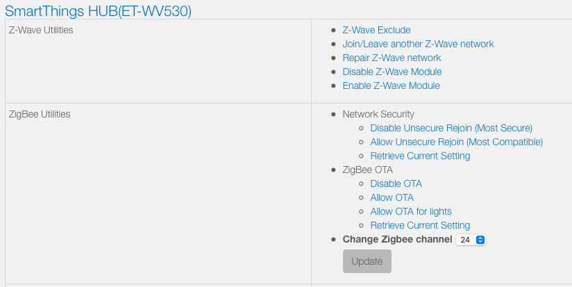 사이트에 로그인한 후, My Location > Location 선택 > Hubs 항목에서 설치한 허브를 선택 > 밑으로 내리다보면 [View Utilities]가 있는데 이것을 클릭합니다.