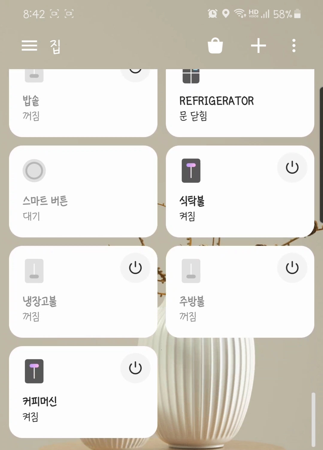st app에서 부엌에 커피머신이 등록되어 있는것을 확인 할 수 있습니다! 연동이 간단하고 좋네요^^