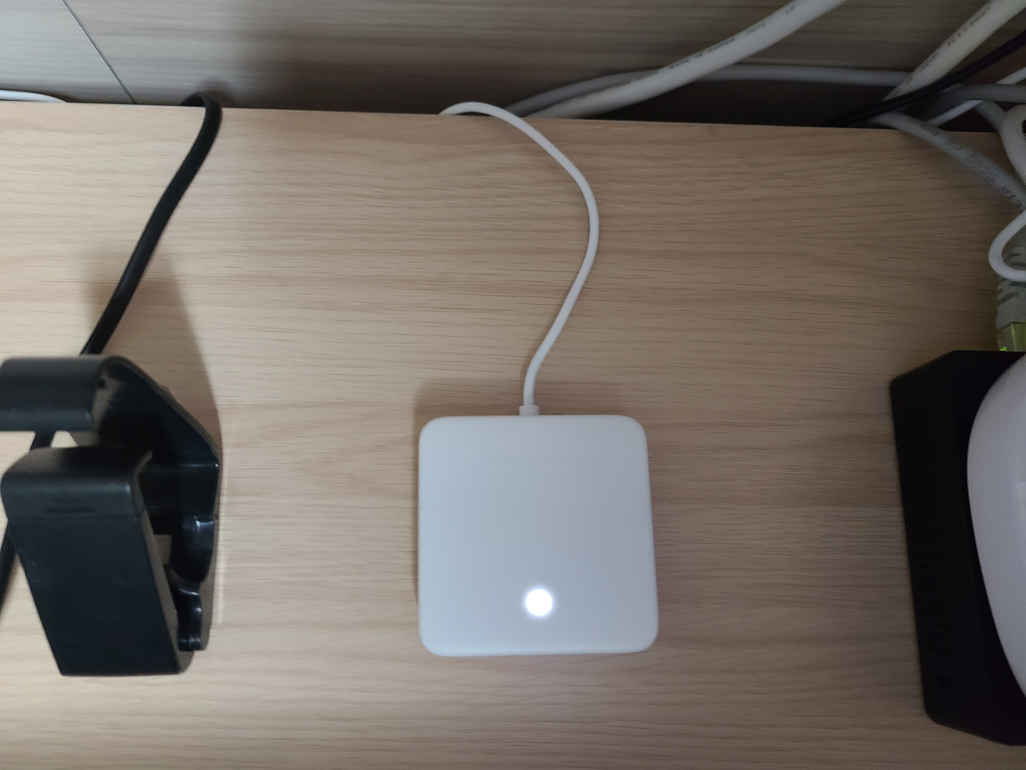 전 벽에 붙이기 싫고 커튼제어가 주목적이므로 더실 st hub 옆에 설치했답니다. 한가지 아쉬운점은 usb 케이블만 들어있고 어댑터는 동봉되어 있지 않아서 추가 비용이 발생할수 있다는점입니다. 다행히 xbox에 포트가 하나 남아서 거기에 끼워주었습니다.