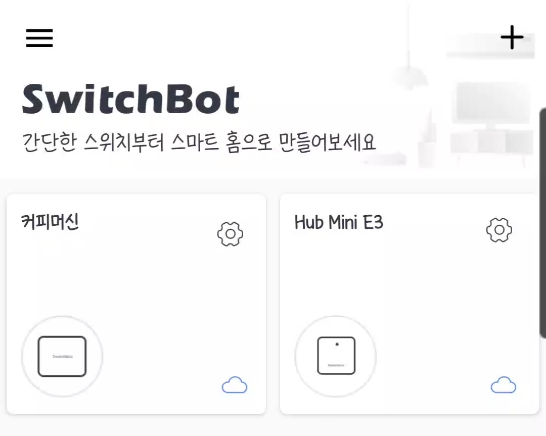다 연동을 마쳤으면 스위치봇앱에 구름(☁)모양의 아이콘이 표시되는걸 확인할 수 있습니다. 이제 외부에서도 제어 할 수 있는 상태가 된것입니다. :-)