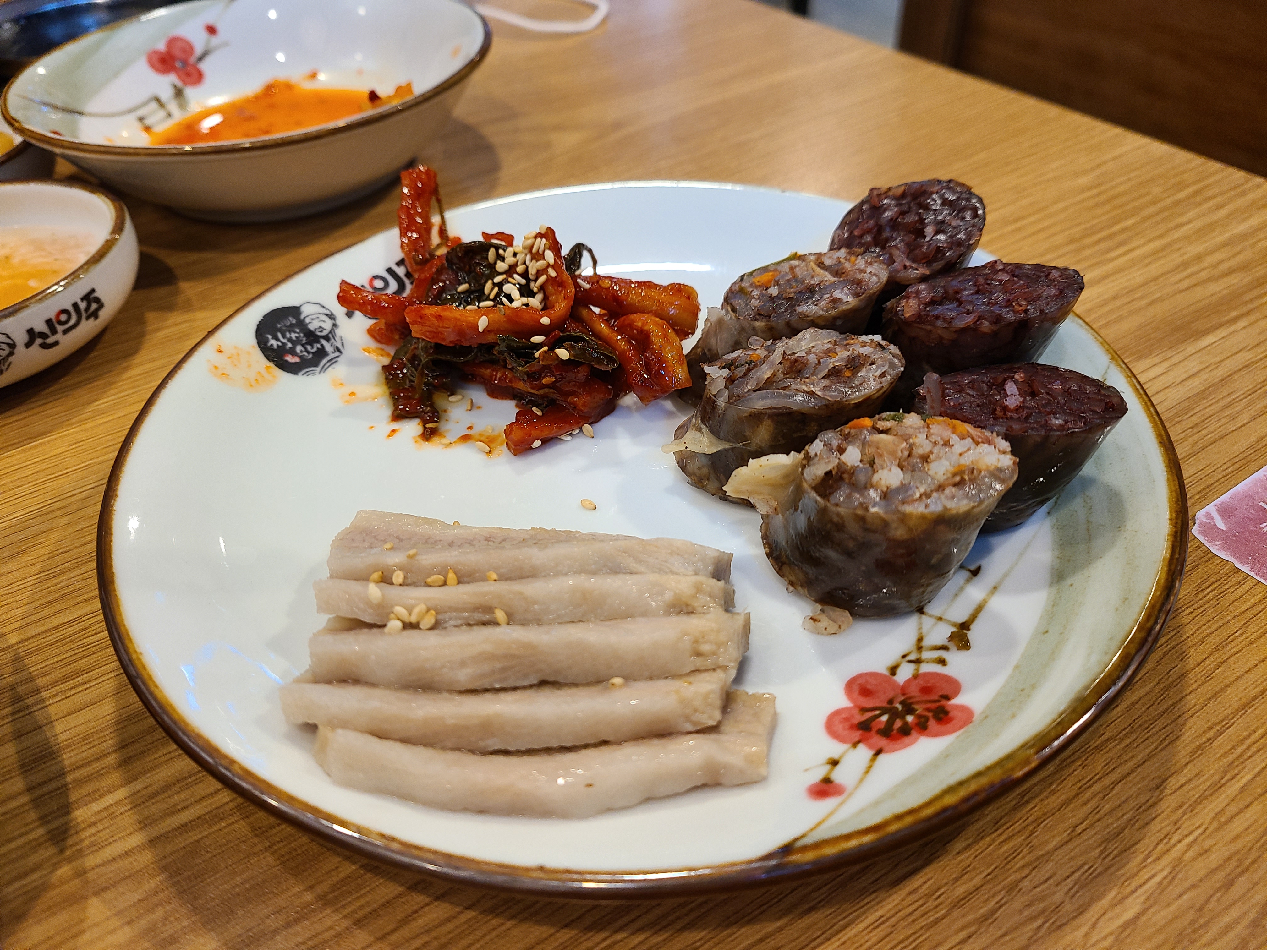 5. 맛보기보쌈과 순대, 무말랭이 일케 한접시 더 나옵니다.