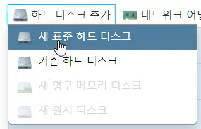 시놀로지 부트 이미지를 추가 하기 위해서 [하드디스크 추가]를 누르고 [기존 하드 디스크]를 선택합니다. 그럼 업로드 화면이 나타나는데 이곳에서 synoboot.vmdk와 synoboot-flat.vmdk 파일을 업로드합니다.