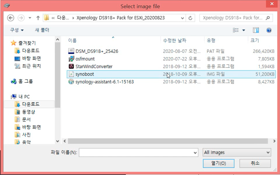 4. synoboot.img : 헤놀로지 부팅 이미지입니다.