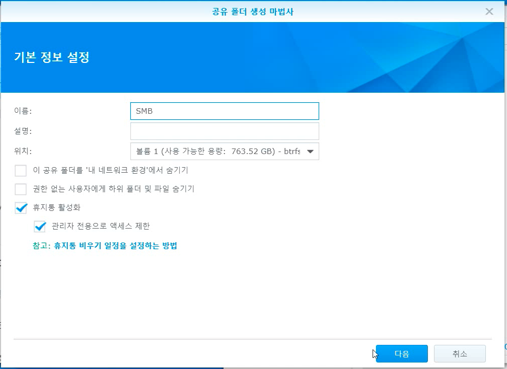 공유폴더(SMB) 만들기
