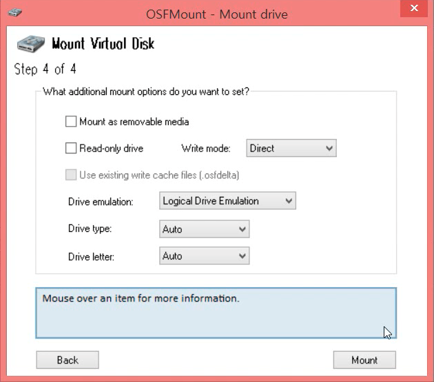 그리고 [Read-Only] 체크되어 있는것을 해제합니다. 그리고 [Mount] 버튼을 누릅니다.