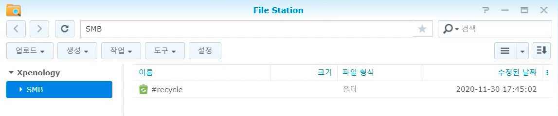 그럼 File Station에 SMB폴더가 보입니다. 공유할 준비를 마쳤네요!ㅋㅋ