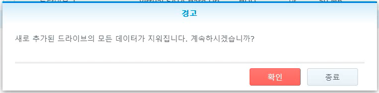 데이터 지워진다고 경고가 나오는데 [확인]버튼을 눌러줍니다.