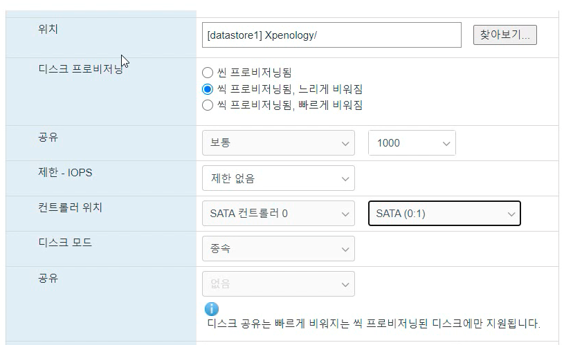 디스크 모드 : 독립 - 비영구