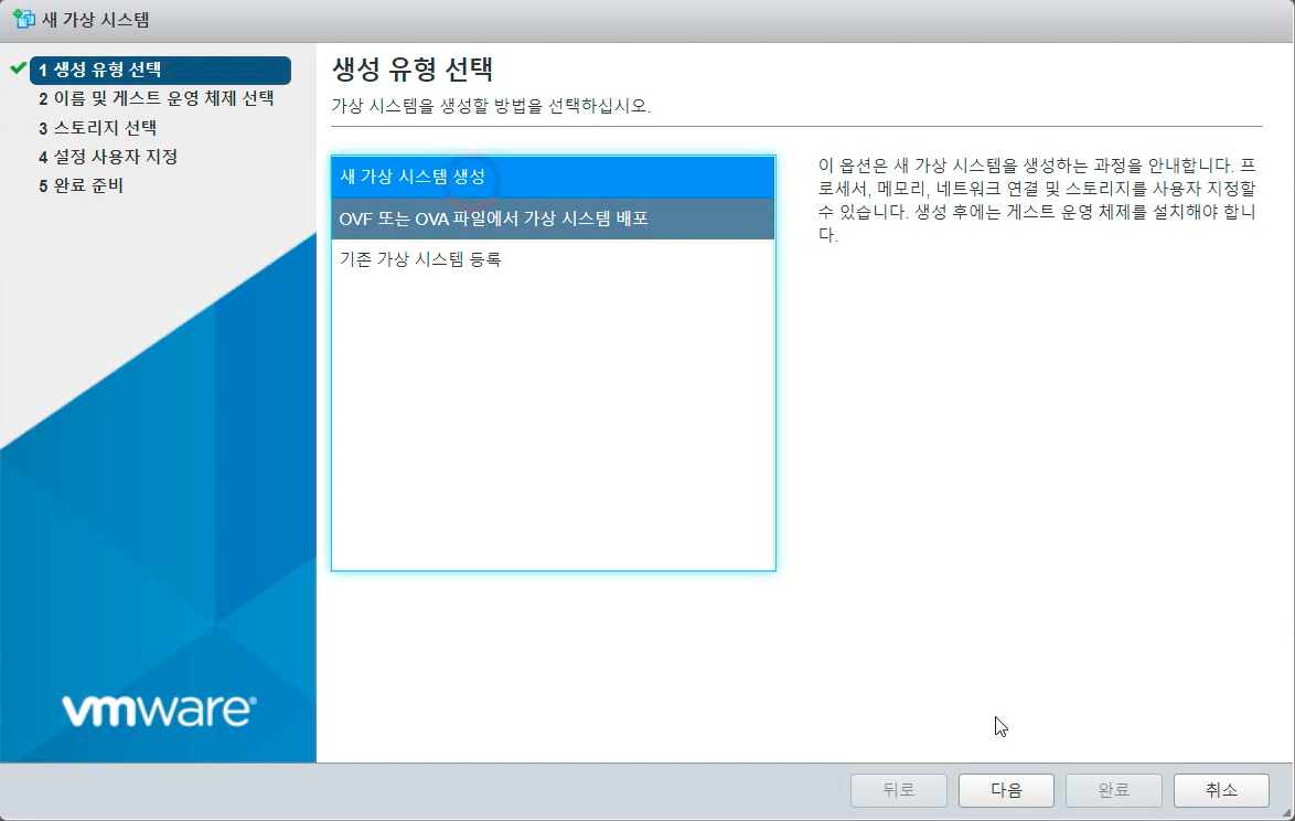 생성 유형을 '새 가상 시스템 생성'을 선택 한 후, [다음] 버튼을 누릅니다.
