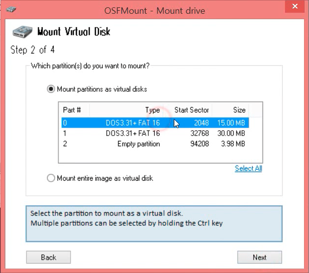 'Part #0 DOS3.31 + FAT 16' 를 선택하고 [Next]를 누릅니다.