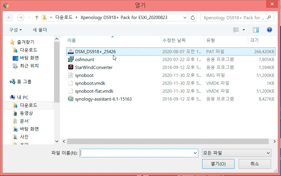 1. DSM_DS918+_25426.pat : 시놀로지 DSM 이미지입니다. 6.2.3 버전입니다.
