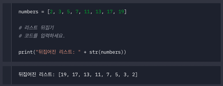 print("뒤집어진 리스트: " + str(numbers))'IT > PYTHON' 카테고리의 다른 글