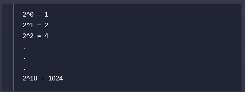 print("{}^{} = {}".format(2, i, 2 ** i))