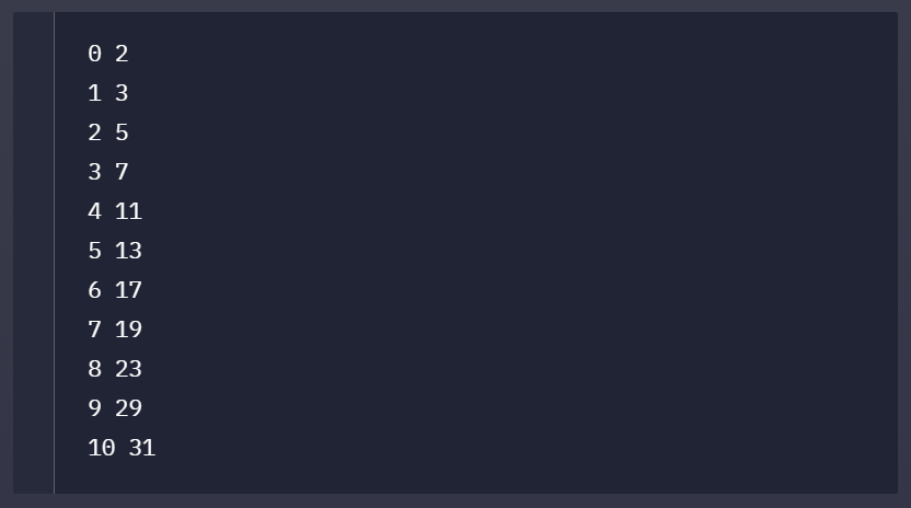 numbers = [2, 3, 5, 7, 11, 13, 17, 19, 23, 29, 31]