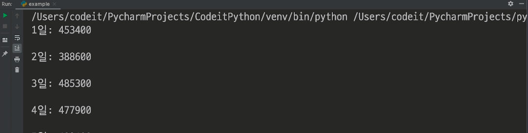:의 왼쪽에는 해달 월의 며칠인지, 그리고 오른쪽에는 그 날의 매출이 적혀 있습니다.