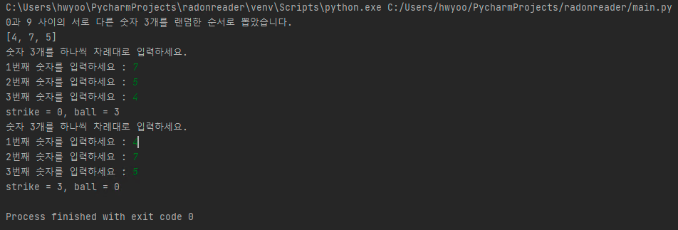 num = input(f"{len(new_guess) + 1}번째 숫자를 입력하세요 : ")
