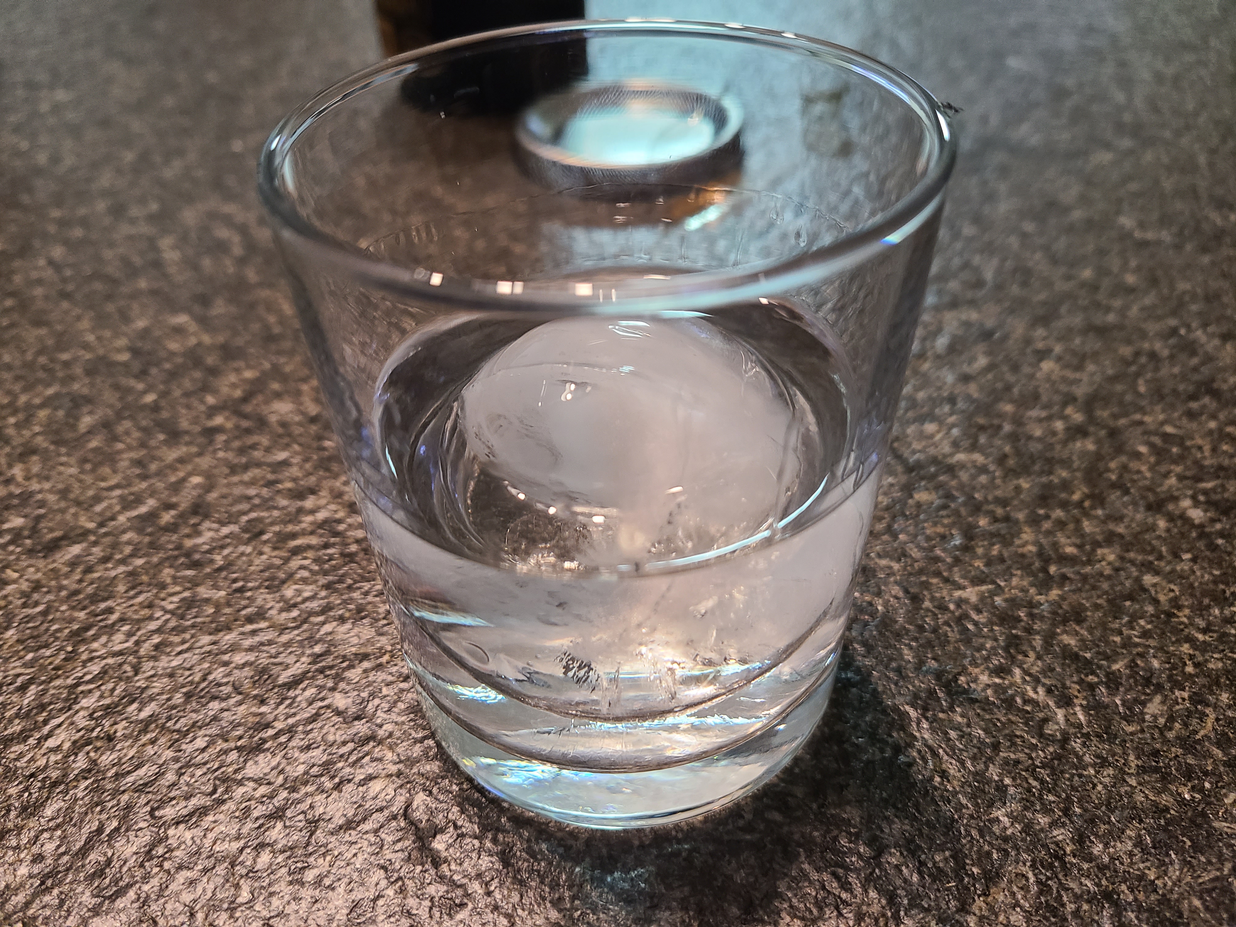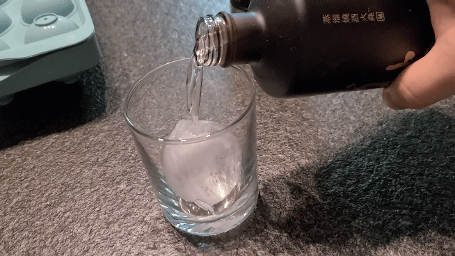 화요41은 41도 이기때문에 스트레이트로 마시기엔 좀 그렇습니다. 그래서 위스키 먹던대로 언더락잔에 원형얼음을 넣고 적당히 화요41을 부어주었습니다.